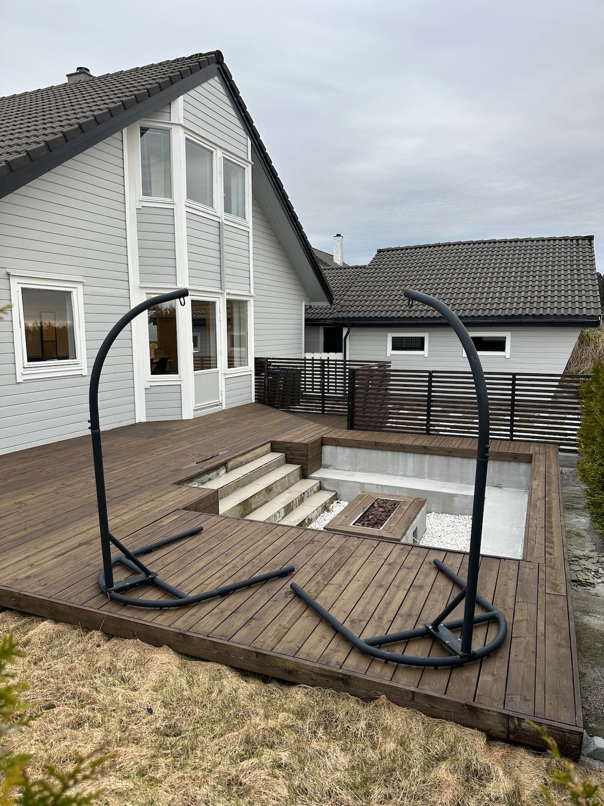 Bienvenidos a nuestra casa privada. Juguetes, materiales de dibujo y todo lo demás que un niño pueda desear, puedes usarlo libremente. 3 dormitorios con una cama doble. Un salón tipo loft con una cama doble, así como un sofá cama con dos plazas para dormir. Una terraza con salón y una gran mesa de comedor. El sol de la mañana a la noche. Cargador de coche eléctrico, spotter en el techo, calefacción por suelo radiante, bomba de calor en la 1ª y 2ª planta que se puede utilizar en calefacción (aire acondicionado) y días fríos. Televisión con AppleTV con suscripciones que se pueden utilizar libremente. A 3 minutos de la casa se encuentra «Træet Badeplass».