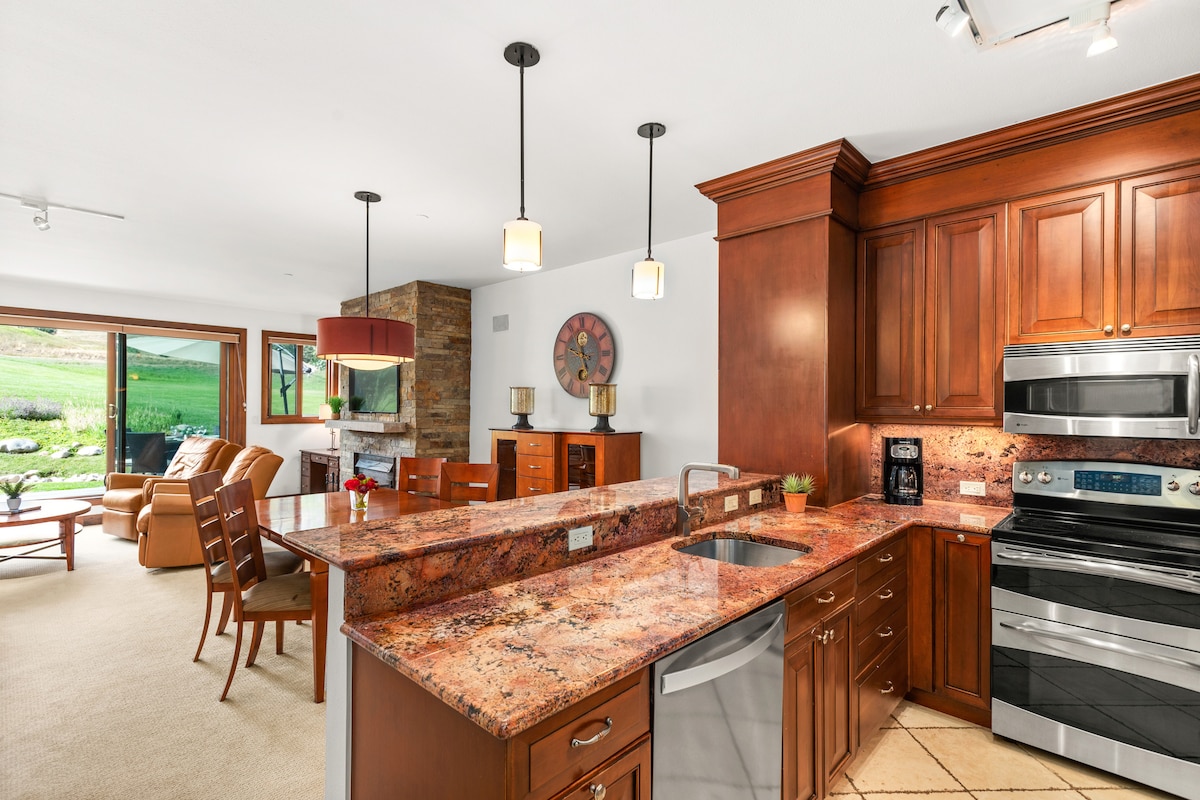 Permiso para alquileres de corta duración en Aspen n.º 083668 Nuestra unidad de 1 dormitorio de gran tamaño y con aire acondicionado tiene vistas a la montaña Aspen desde todas las habitaciones Sala de estar con chimenea natural, techo de catedral, gran sección cómoda, gran pantalla plana, acceso al balcón y grandes vistas a la montaña Cocina totalmente equipada. El segundo baño completo es un verdadero lujo para dos o más personas en la residencia El balcón abarca todo el ancho de la unidad y da a la montaña Aspen, la piscina y el jacuzzi Revisa las fotos y las normas de la casa antes de reservar