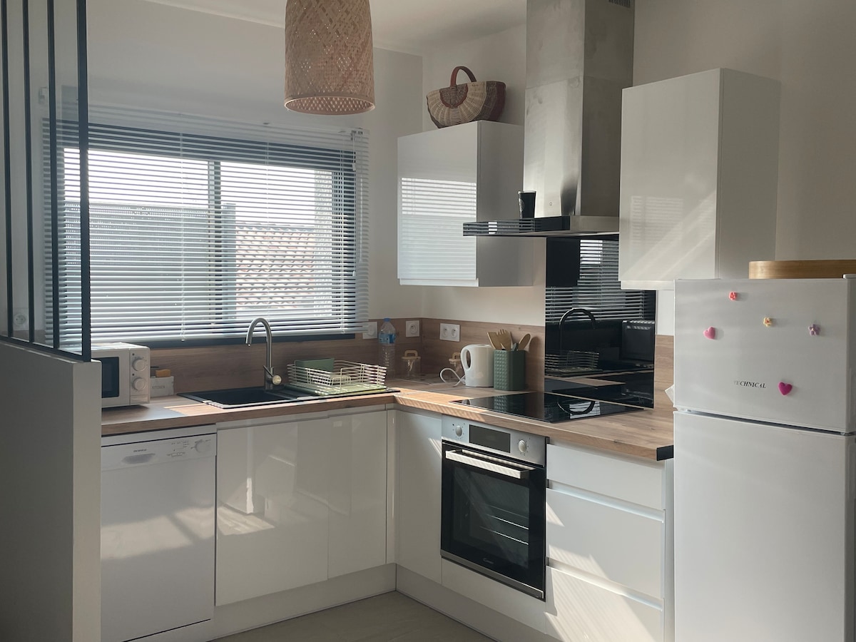 Situada cerca de Bassin de Thau, cerca de Mèze, Balaruc, Sète... Villa contemporánea de 105 m2 habitables 3 habitaciones (1 en la dependencia): - 1 suite principal ( cuarto de baño, aseo, vestidor) cama de 160 - 1 dormitorio con armario , 2 camas individuales de 90 cm, 1 cuarto de baño -1 habitación en el exterior de la casa en la dependencia alrededor de la piscina, cama de 160 cm, armarios, cuarto de baño y aseo Salón, comedor con cocina abierta a una gran terraza Garaje, piscina con tumbonas, terreno cercado