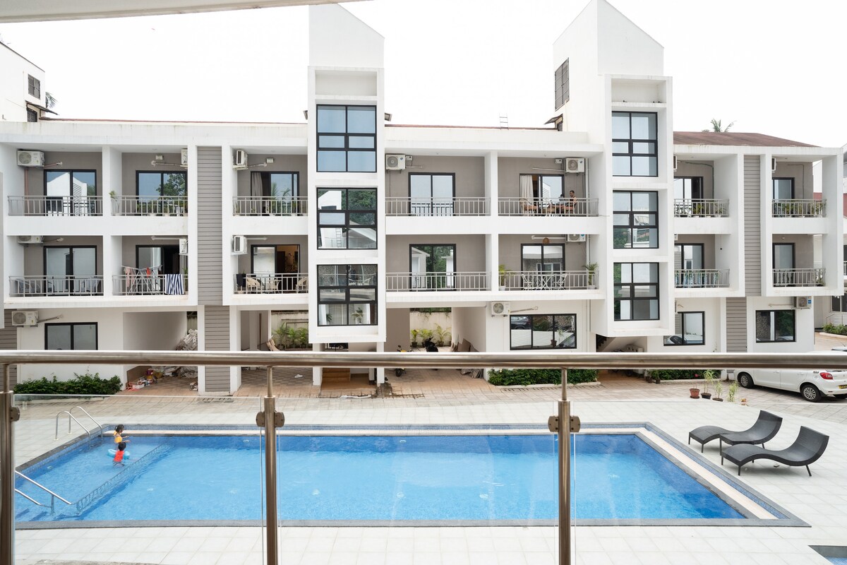 10 April to 15 May pool is not functioning. Escape to our serene 1 BHK serviced apartment in the heart of North Goa. With a 'designer delight' aesthetic, this space is a perfect retreat for a short break or an extended holiday. Its 5 minutes from Baga Beach & surrounded by iconic restaurants, clubs . Enjoy access to pool, garden & 24*7 security, making your stay exceptional. This property is a rare gem offering unmatched beauty. Famous Club Diaz just 500 meters away No visitors Allowed