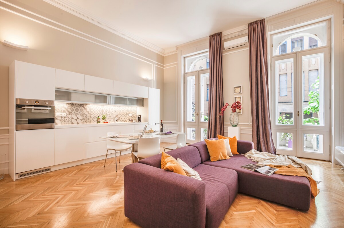 Si estás buscando una escapada acogedora pero muy elegante en el centro absoluto de Budapest, ¡entonces la has encontrado! Lo más destacable: - Diseño profesional, materiales de alta calidad y mobiliario. - Amplio espacio para dos personas, con salón y dormitorio separados. Olvídate de los estudios del tamaño de una caja de zapatos; ¡este es un apartamento de verdad! - Excelente ubicación, cerca de todos los lugares de interés y de los mejores restaurantes, entretenimiento y tiendas que ofrece Budapest. - Cocina totalmente equipada. - Lavabo doble en el baño.