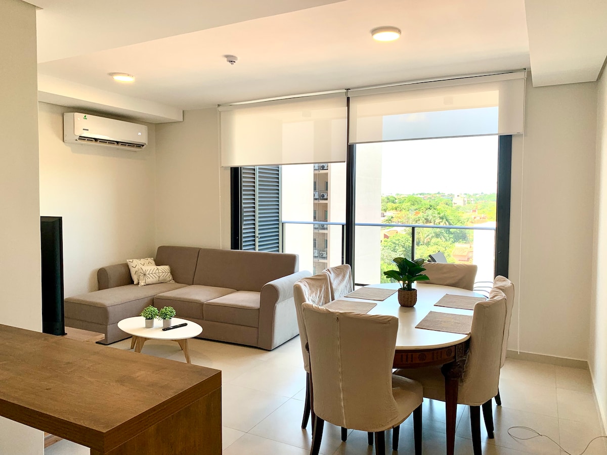 34,4 m² con balcón privado * A 12 minutos a pie de cafeterías, restaurantes y uno de los centros comerciales más grandes de Asunción * Equipado para una cómoda estadía * Estacionamiento para 1 vehiculo * 1 Smart TV * Portero 24/7 * Wi-Fi de 200 Mbps Amenities * Piscina climatizada * Piscina + solárium * Sauna AVISO: EL AREA DE SPA EN MANTENIMIENTO HASTA EL 20/03/26. * Gimnasio * Lavandería Agrega mi anuncio a tu wishlist haciendo click en el ❤ de la esquina superior derecha