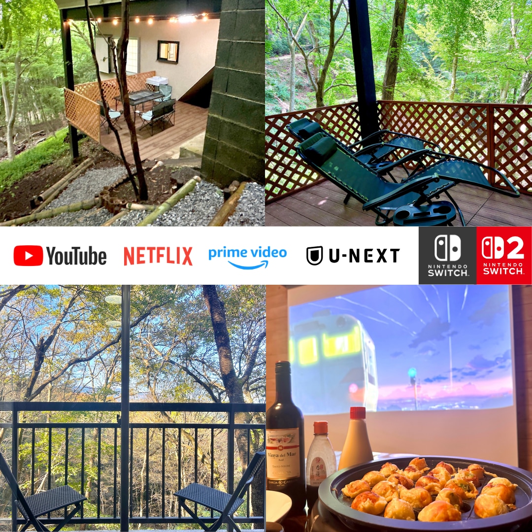 [Oferta por el segundo aniversario] “Mori no Yakata, Shinobi no Yado Genen” con terraza para barbacoa y proyector gigante