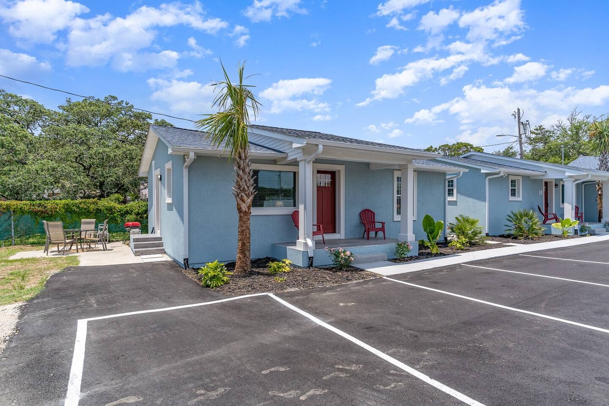 Adorable 2 Bedroom, 2 Bath Cottage (Suite A-Sleeps 6) with covered front porch LOCATED 320 Yards from the BEACH. Enjoy this completely remodeled home that Boasts Modern Kitchen with SS Appliances & Granite Counters along with Central Air, WIFI,Washer/Dryer & all your basic necessities. Enjoy your outdoor table along with Charcoal Grill-- Golf Cart Friendly too! Centrally located and minutes to restaurants, local shopping & activities. Snow birds welcome! We do allow 1 small dog that is 25 poun