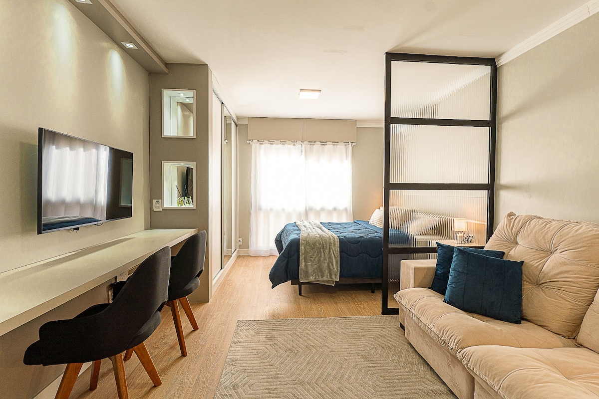 Loft moderno y completo en Rossi Atlântida, el condominio más estructurado de la costa norte de Gaucho, a solo 800 m de la playa. Tienen 57 m² y cuentan con salón y cocina integrados, habitación doble, baño con gas y balcón con parrilla para barbacoa. Wifi, Smart TV, aire acondicionado y plaza de aparcamiento. El condominio ofrece, entre otras cosas, piscina climatizada, gimnasio, pistas deportivas y club de playa exclusivo (que ofrece 2 sillas y 1 sombrilla a los huéspedes y restaurante - temporada alta).