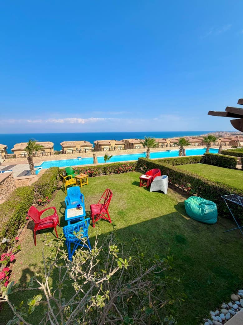 Luxury Golf-View Chalet with Private Garden | Ein Bay Ain Sokhna Luxury 2-bedroom chalet in Ein Bay Ain Sokhna with a private landscaped garden and serene lagoon view. Perfect for golfers, families, or couples seeking a peaceful escape. Enjoy full access to resort amenities including beach, pools, and golf facilities. A premium retreat offering comfort, privacy, and relaxation—just a short drive from Cairo.
