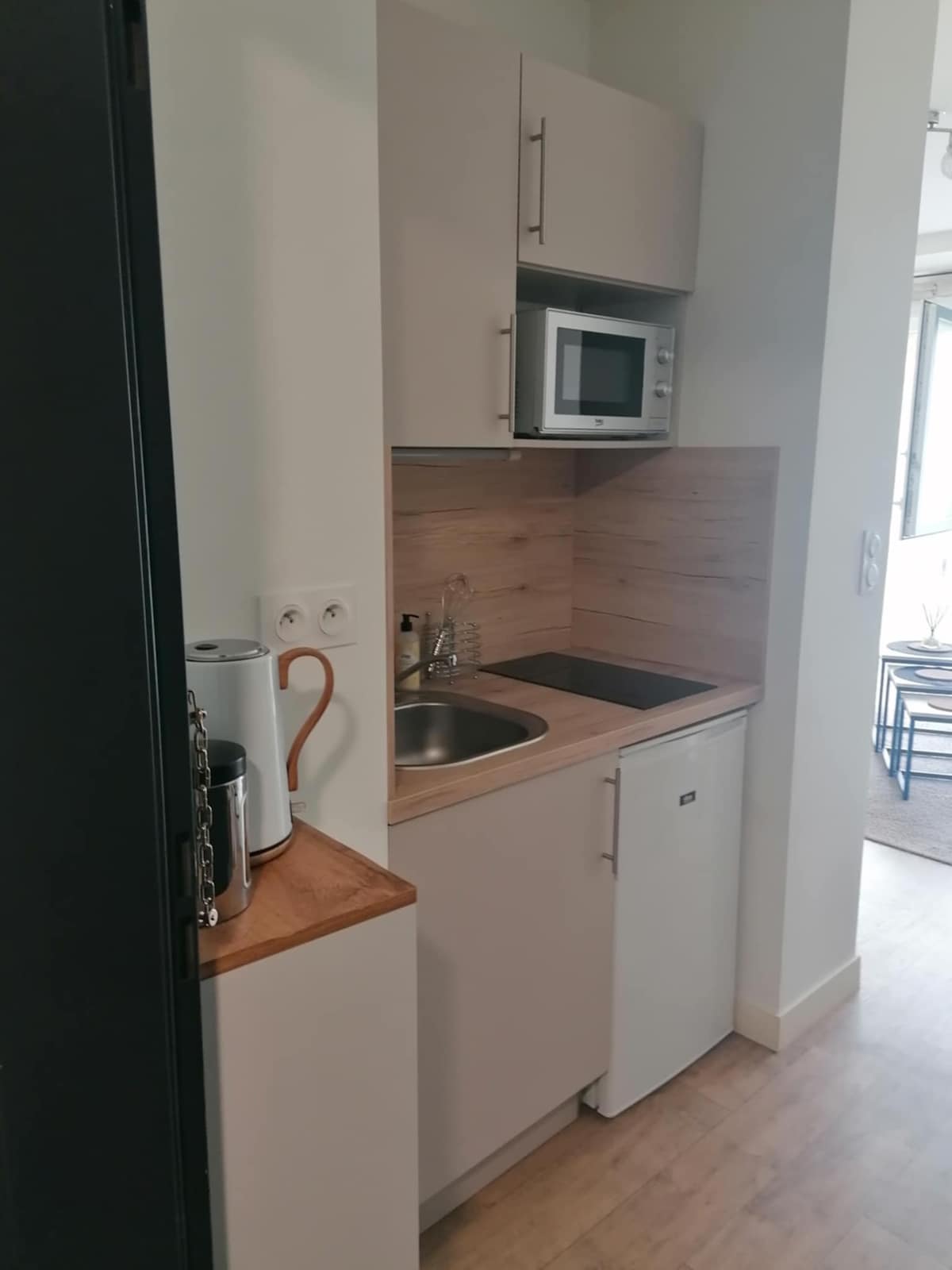 Relájese en este estudio tranquilo y elegante, orientado al sureste para disfrutar de un despertar soleado. Este alojamiento nuevo de 24 m² se encuentra en una residencia tranquila y dispone de una plaza de aparcamiento numerada (n.° 220). *A 10 minutos del centro de la ciudad de Troyes. ✓Ideal para un momento de descanso en pareja o solo ✓Cerca de la UTT ✓Fácil acceso cerca de la carretera de circunvalación y las salidas de la autopista. *Equipamiento: ✓Vestidor ✓Placas de cocción, nevera, microondas ✓Cafetera Senseo ✓Ropa de cama y toallas