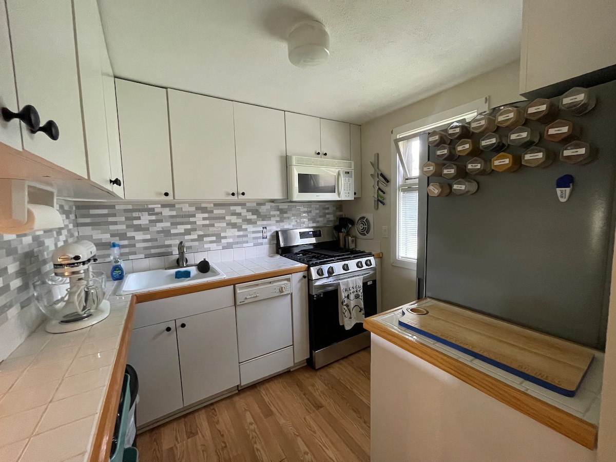 Construimos esta casa de 2 niveles hace 6 años y se encuentra en Washington St, en el distrito histórico de la ciudad. La casa está apartada de la calle con un largo camino de entrada de estilo rural. La diseñamos con grandes ventanales en todas las habitaciones, dando la bienvenida a la luz del sol y a un entorno tranquilo. Acceso a garaje limpio y vacío para almacenamiento (sin estacionamiento). No tenemos artículos personales en el nivel de invitados: ¡todos los armarios y aparadores están vacíos y son tuyos para su uso completo! El coanfitrión reside en la suite de entrada independiente inferior. Nada compartido.