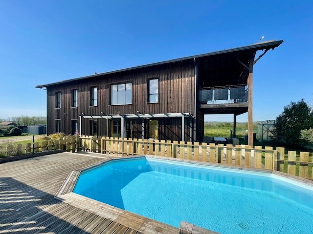 5 km de LANGON 33 nueva construcción 5 casas rurales de 37 m² de una sola planta con jardín privado en la parte posterior, terraza protegida, aparcamiento cerrado de 750 m². Cada apartamento tiene capacidad para 2/4 personas. Ideal para estancias en pareja, en familia, con amigos, ya que existe la posibilidad de alojar a 20 personas en total. Situado en un parque de 5000 m² arbolado con piscina, junto a un campo de golf, a 5 minutos del Canal latéral de Garonne y sus carriles bici, del complejo de restaurantes, cine, bolera y varias propiedades vinícolas.