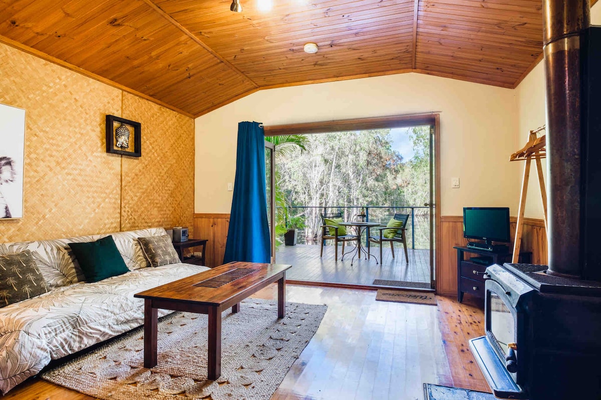 En el corazón de Cambewarra Village, te alojarás en un estudio de una habitación luminoso y espacioso, con una pequeña cocina de campo, un baño de estilo vintage y una terraza delantera. Perfecto para parejas, amigos o un viajero solitario que quiera descansar de la rutina. Cambewarra Village está a 10 minutos del centro de la ciudad de Nowra y a 15 minutos de las pintorescas ciudades de Kangaroo Valley y Berry. Una gran base para todas las estaciones mientras exploras la hermosa región de Shoalhaven.