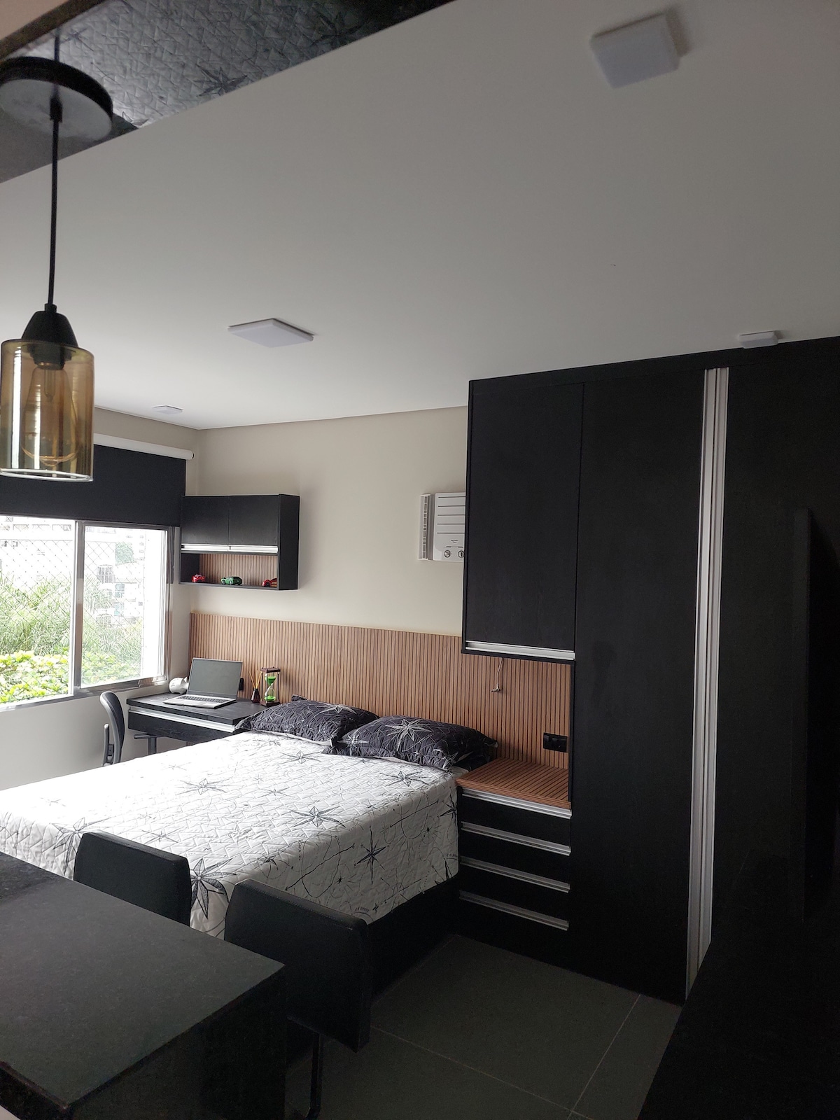 Abraza la sencillez en este lugar tranquilo y bien ubicado - en la cuadra de la playa, frente al Acuario, un punto turístico tradicional de Santos. El mobiliario es funcional con un cómodo sofá cama y una cama con cabecero tapizado que invita al descanso. Cada elemento, desde la ducha, el aire acondicionado, el colchón hasta los accesorios decorativos, ha sido cuidadosamente pensado para transmitir calidez y confort. La cocina compacta es práctica con electrodomésticos de última generación.