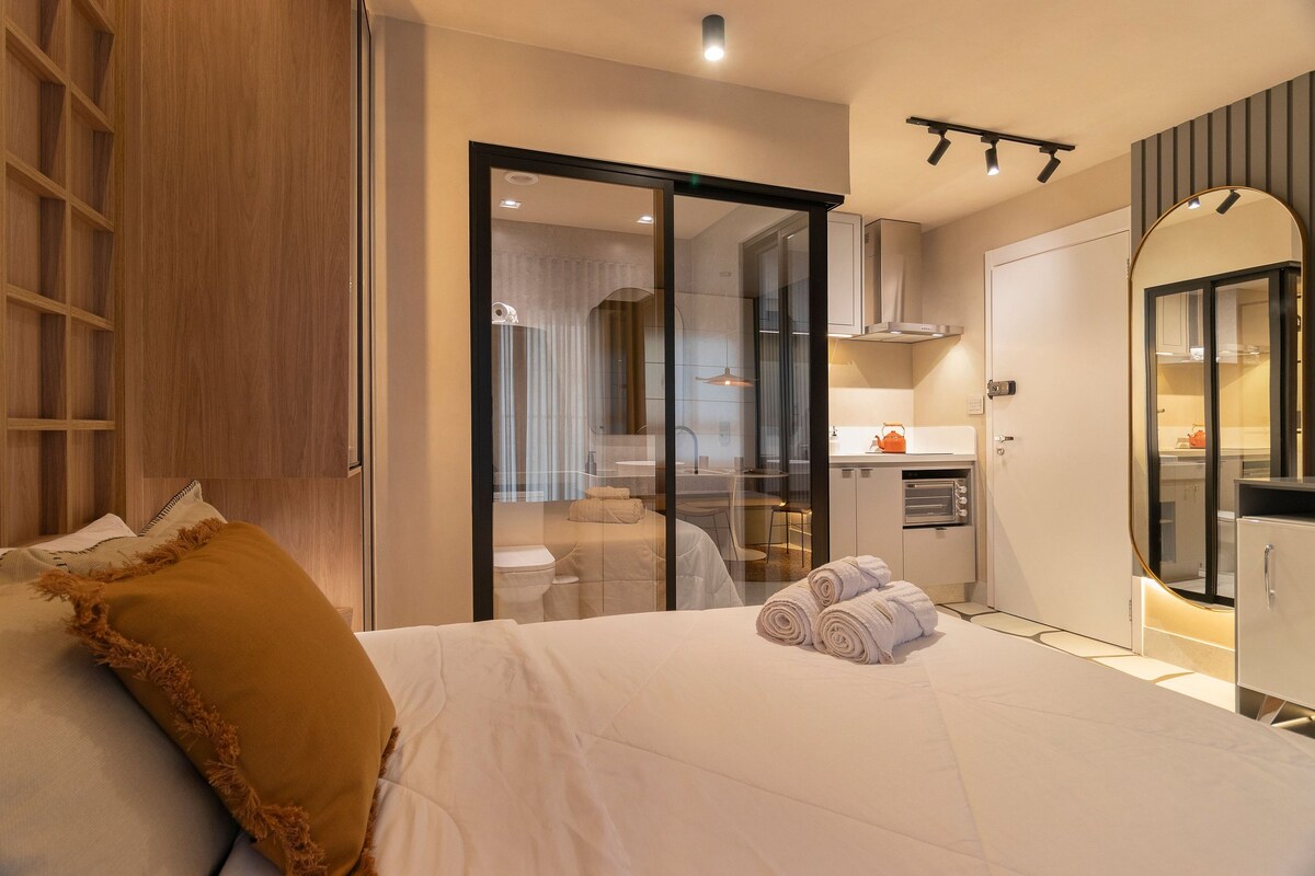 Este estudio fue diseñado para aquellos que buscan estilo, comodidad y practicidad. • Diseño Contemporáneo. • Cocina completa. • Área de Trabajo: Una mesa funcional para quienes necesitan un espacio para trabajar o estudiar. ¡Ideal para ejecutivos, parejas o viajeros que buscan sofisticación y practicidad en São Paulo! Aviso: El edificio es de nueva implantación, y pueden ocurrir reformas puntuales en algunos apartamentos, con posibles ruidos durante el horario comercial.