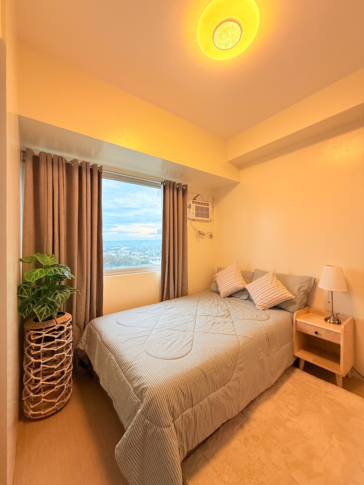 Cerca del mercado nocturno de Roxas, tiendas de recuerdos de Aldevinco, tiendas 7/11, el hotel Marco Polo, el hotel Royal Mandaya y el centro comercial Gaisano. Este espacio tiene 1 cama tamaño queen, un baño, una cocina pequeña, lavadora y unas vistas estupendas de la ciudad. Los huéspedes tienen acceso a piscinas y a un parque infantil en el primer piso. El condominio cuenta con seguridad/vigilancia las 24 horas. Como medida de precaución adicional para tu salud, realizamos una desinfección UV, lo que da como resultado un registro más tarde de lo habitual y una salida más temprana.
