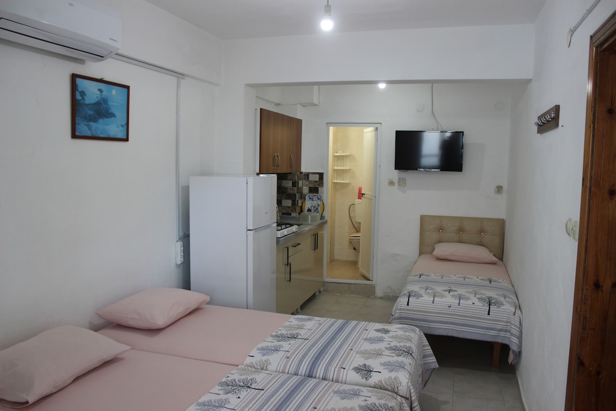 Nuestra casa es un edificio independiente en el centro de Mürefte, hay 5 habitaciones separadas, todas nuestras habitaciones tienen baño y aseo, nuestras habitaciones tienen aire acondicionado, mininevera y TV, es completamente en el concepto de una habitación de hotel. 2 de nuestras 5 habitaciones son 1+1 y hay una cama individual en nuestra habitación pequeña fuera del dormitorio normal. Nuestras habitaciones 1+1 no tienen balcón. Nuestras otras 3 habitaciones consisten en una cama doble individual. Tekirdağ 95 km Şarköy 12 km Estambul 198 km
