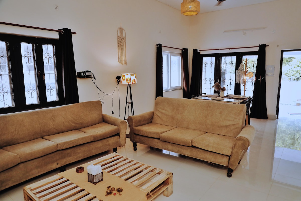 👉🏻 LOS SOLTEROS, LOS HUÉSPEDES LOCALES Y LOS HUÉSPEDES DE TU VISITA NO ESTÁN ESTRICTAMENTE PERMITIDOS. 👉🏻 INVITA LAS REGLAS DE LA CASA ANTES DE RESERVAR Área: No se comparte conmigo ni con otro huésped. Independientemente de que hayas reservado para 1 o 6 huéspedes, tendrás toda la villa en privado. Planta: baja sin escaleras Cuidador: 24*7 para la limpieza/lavado de platos Wifi: Airtel 100 MBPS Aparcamiento: uno cerca y otro abierto Cocina: totalmente equipada Metro: 1 km Lavadora: LG OTT: Prime/Hotstar Parque de la sociedad: a pie Se admiten mascotas