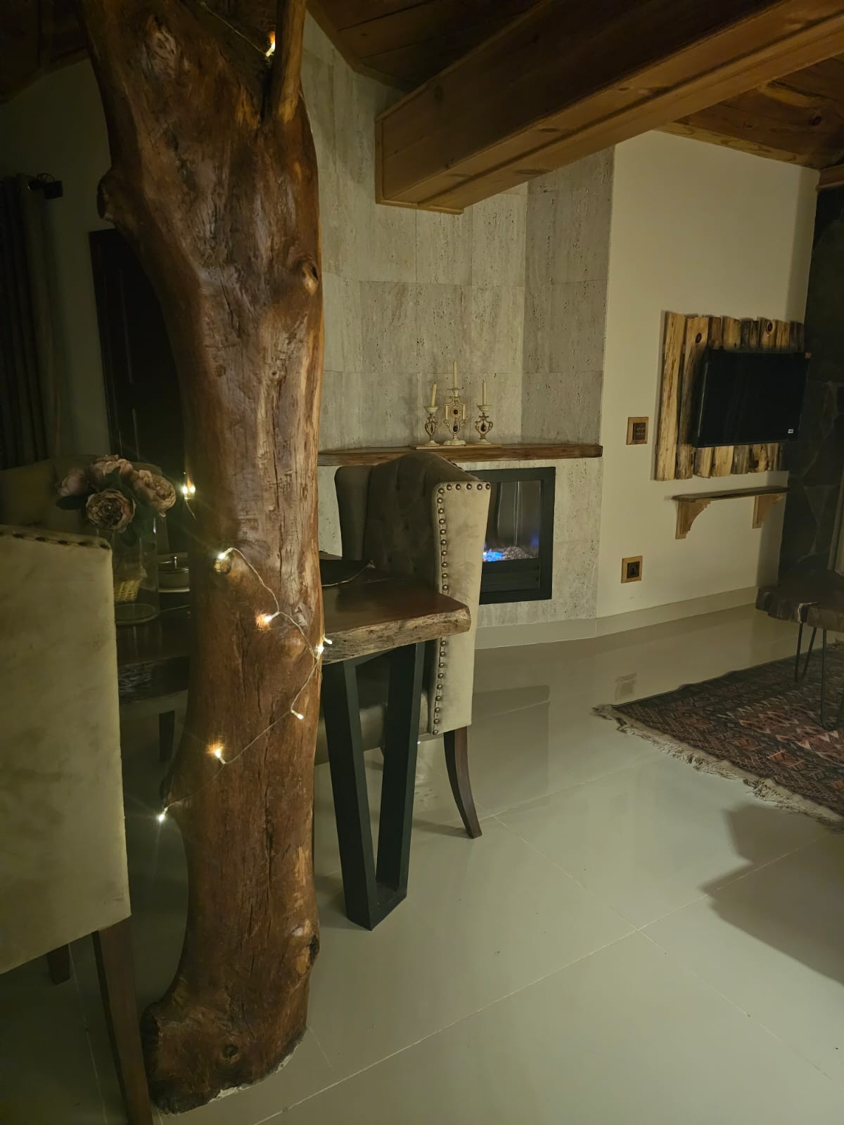 Ponte cómodo y acomódate en este espacio rústico.*Annas Treehouse* Escápate a la serenidad de las montañas en nuestro encantador refugio de 2 dormitorios. Ubicado en un entorno pintoresco, este acogedor refugio ofrece unas vistas impresionantes, una vida cómoda y una mezcla perfecta de relajación y aventura. *Servicios:* - 2 amplios dormitorios con camas de felpa y vistas a la montaña - Cocina totalmente equipada para autoservicio - Acogedora sala de estar con chimenea - Balcón privado con vistas impresionantes. - Estacionamiento y conexión wifi.