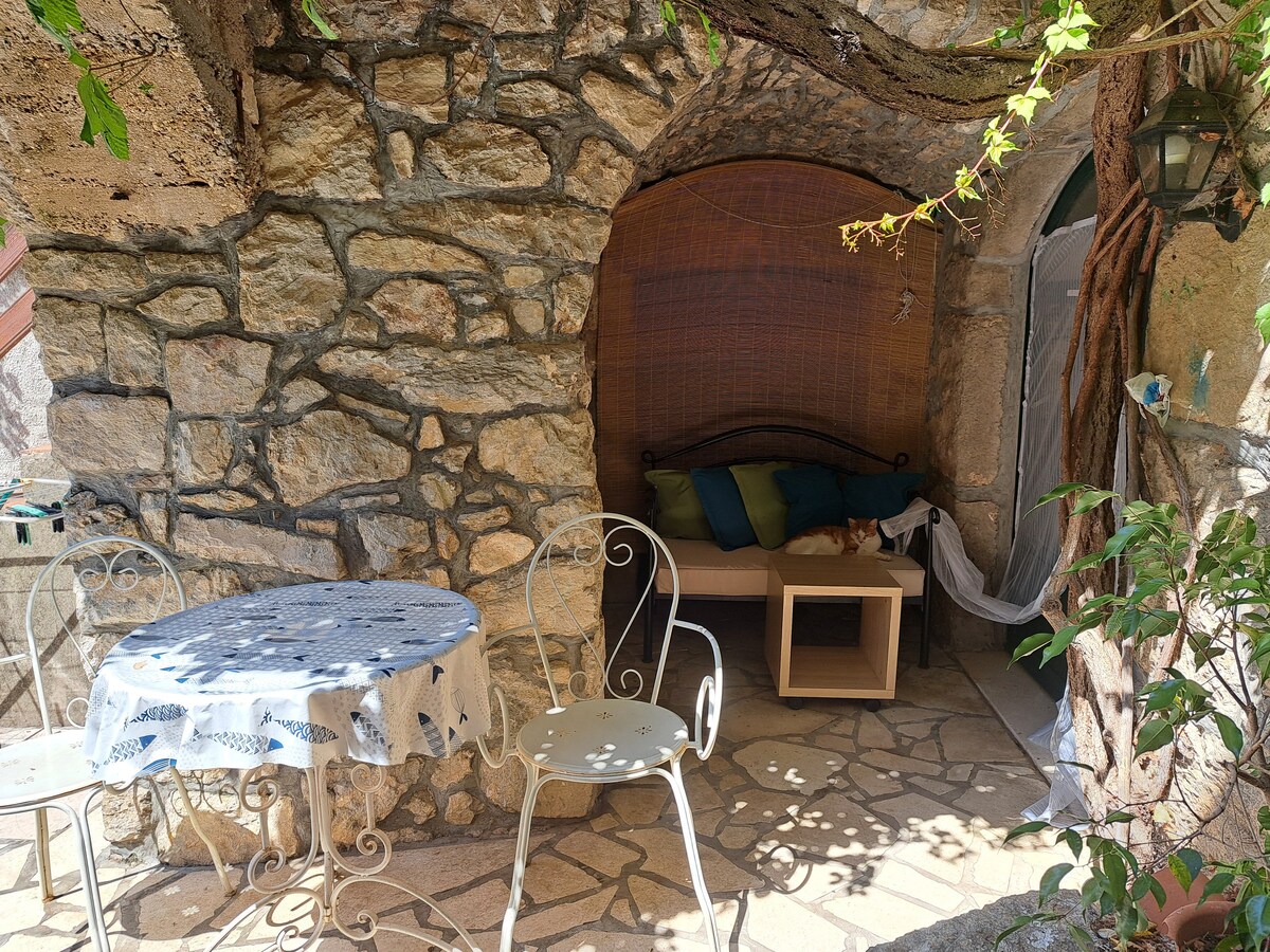 Casa de piedra de dos pisos, con un dormitorio, sala de estar, comedor, baño y cocina. Fue construido originalmente en 1711., está en el centro de Jelsa. Cuenta con todas las comodidades modernas: aire acondicionado, TV, lavadora, cocina y baño equipados, y una pequeña biblioteca. Además, nuestros huéspedes reciben una acogedora botella de vino casero y aceite de oliva. No está a más de 100 metros del mar. Una pequeña terraza, con vistas a nuestro jardín, es perfecta para disfrutar de tu café o una copa de vino.