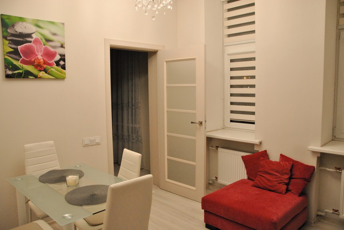 Bright and spacious 50 m² apartment in the very center of Riga, ideal for couples or solo travelers who value calm and comfort. Located on the 5th floor, it offers privacy, beautiful light, and a peaceful atmosphere after exploring the city. Thoughtfully redesigned with care and love. Situated on the 5th floor without an elevator — guests are kindly asked to confirm they are comfortable with this. Flexible check-in and late check-out whenever possible.