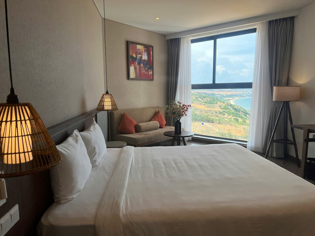 Welcome to Apec Mandala Mũi Né, where luxury meets tranquility in one of Vietnam’s most breathtaking coastal destinations. Each room thoughtfully designed to provide ultimate comfort while embracing the beauty of the surrounding nature. The interiors feature a harmonious mix of modern aesthetics and traditional Vietnamese elements, creating a cozy yet luxurious ambiance. Floor-to-ceiling windows allow natural light to flood the space, panoramic views of the turquoise sea, and lush landscapes.