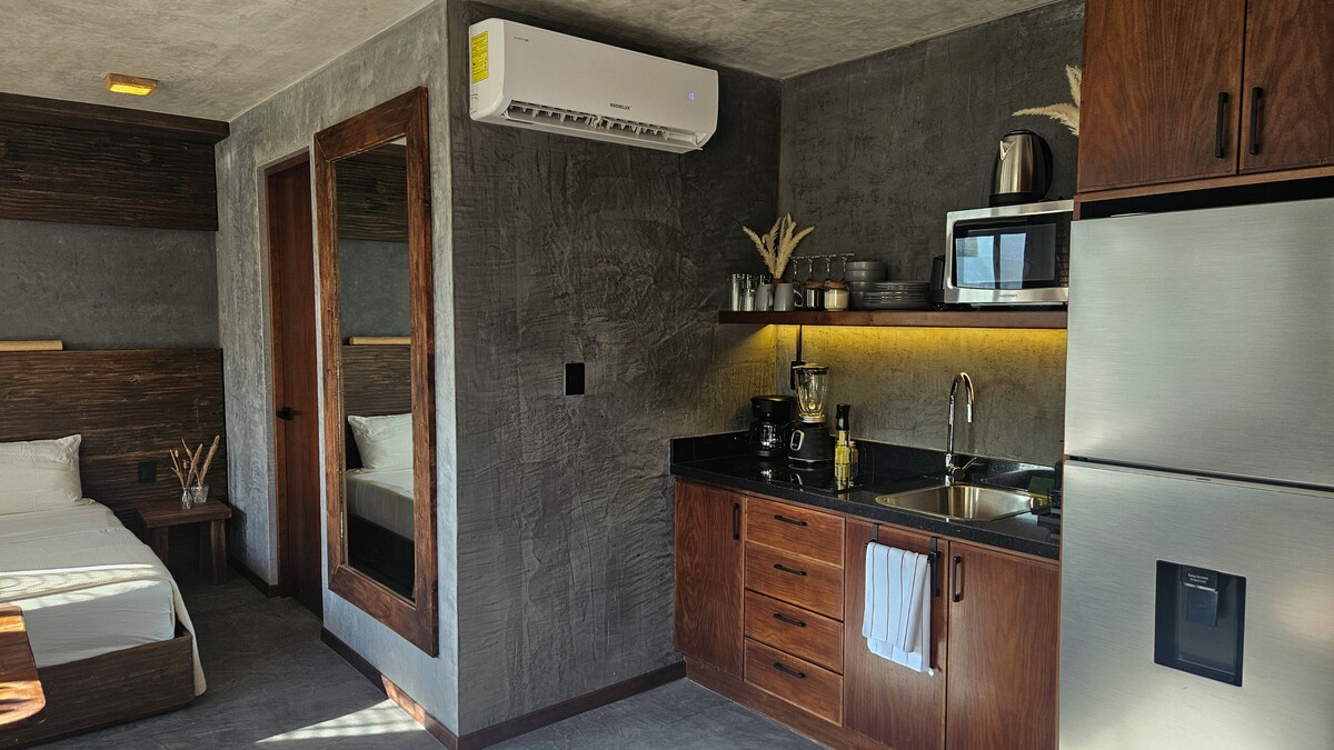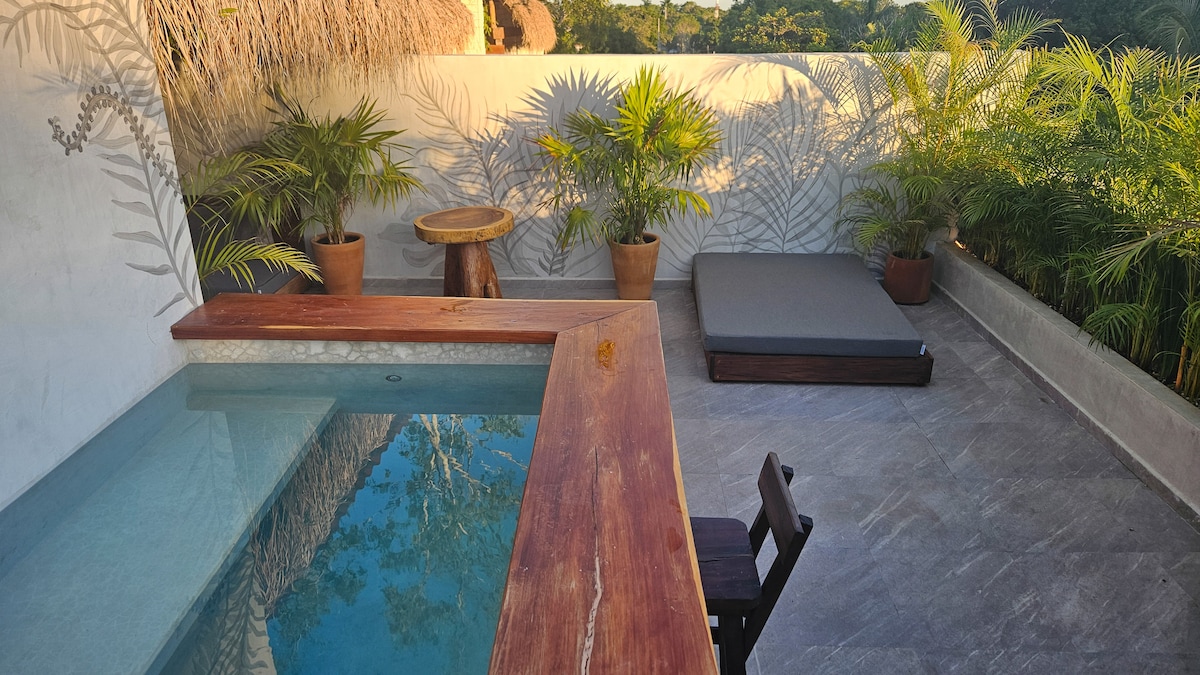 Loft moderno con alberca y cocina en Bacalar