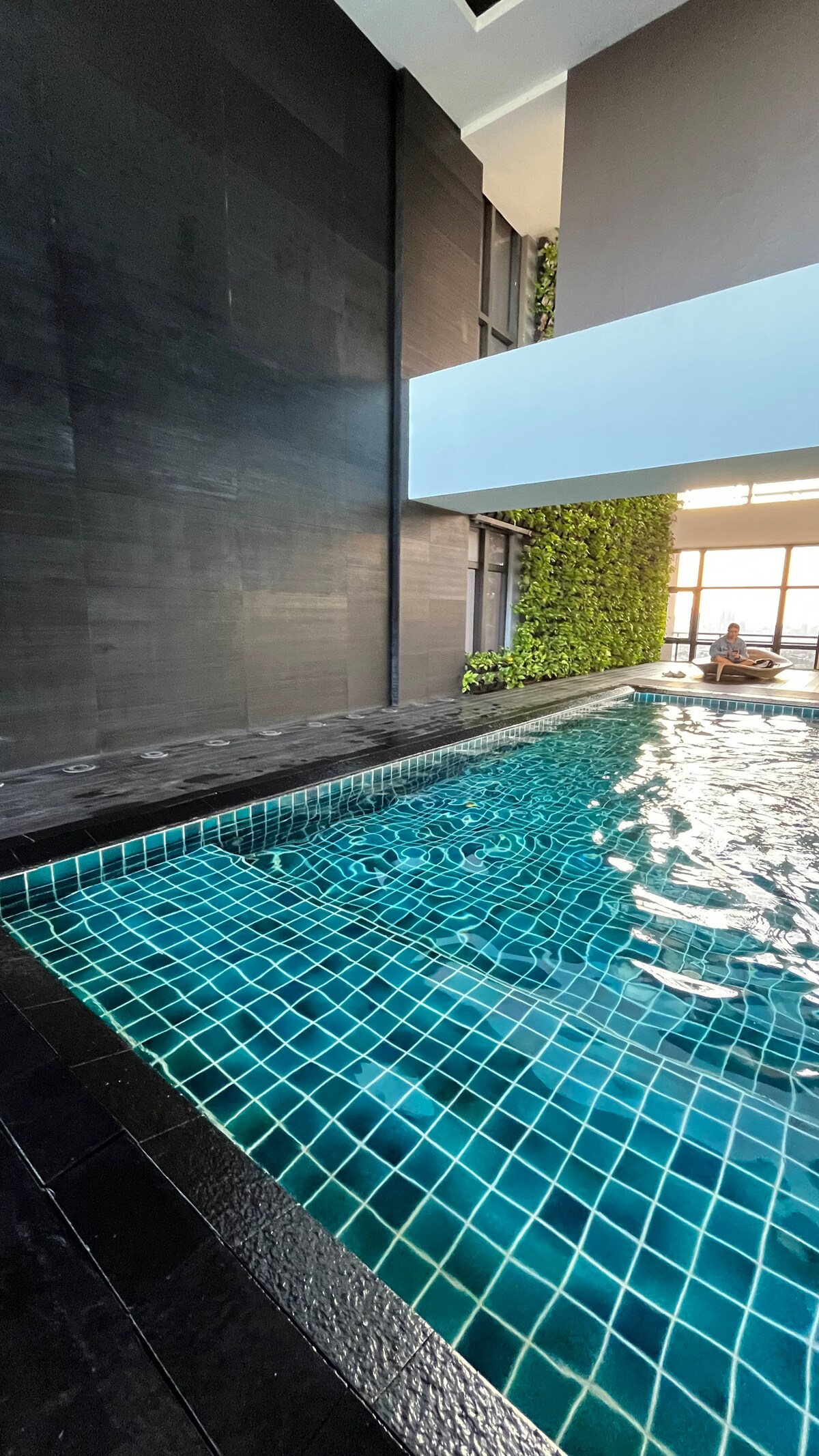 Moderno y espacioso 1BR con balcón y piscina a pocos kilómetros del aeropuerto y a pocos pasos de numerosas atracciones en el área de la bahía de Manila. Cocina bien equipada, sala de estar iluminada por el sol, cama cómoda, wifi, Netflix, aire acondicionado y TV tanto en la sala de estar como en el dormitorio. Alojamiento perfecto para parejas, familias pequeñas o viajeros de negocios. Sauna y zona de juegos para niños: uso gratuito Piscina: gratis hasta tres invitados; 200 PHP por cada invitado adicional.