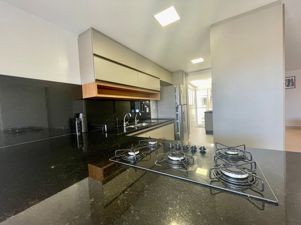 Casa a estrenar, con 300 m² de superficie construida, mucho ocio para la familia. Se encuentra a 5 minutos a pie de la playa principal y de Multiplace Mais. Para P12 son 3 minutos en coche. Disfrutarás de increíbles experiencias con tu familia, contamos con equipos y alojamientos de alto estándar. La casa está completa, tiene aire acondicionado y TV en las cinco habitaciones, nueva electrónica y varios artículos láser. Hay 2 suites, 3 dormitorios, 7 camas y colchones adicionales. ¡PROVEEMOS ROPA DE CAMA Y TOALLAS!