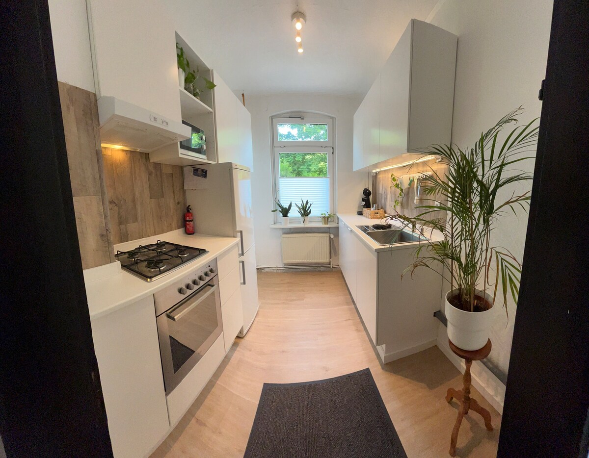 Liebe Gäste, die Wohnung bietet Platz für bis zu 4 Personen bei ca. 50 m² an: - Schlafzimmer mit Doppelbett - Wohnzimmer mit ausziehbarer Schlafcouch - Badezimmer mit Dusche (klein) - Komplett ausgestatteter Küche (Kühlschrank, Her/Ofen, Spülmaschine, Mikrowelle, Wasserkocher/Filter-Kaffeemaschine, Geschir) -Separater Eingang Die Wohnung ist aufgeteilt in Erdgeschoss und Obergeschoss. Nichtraucherwohnung / Haustiere sind erlaubt