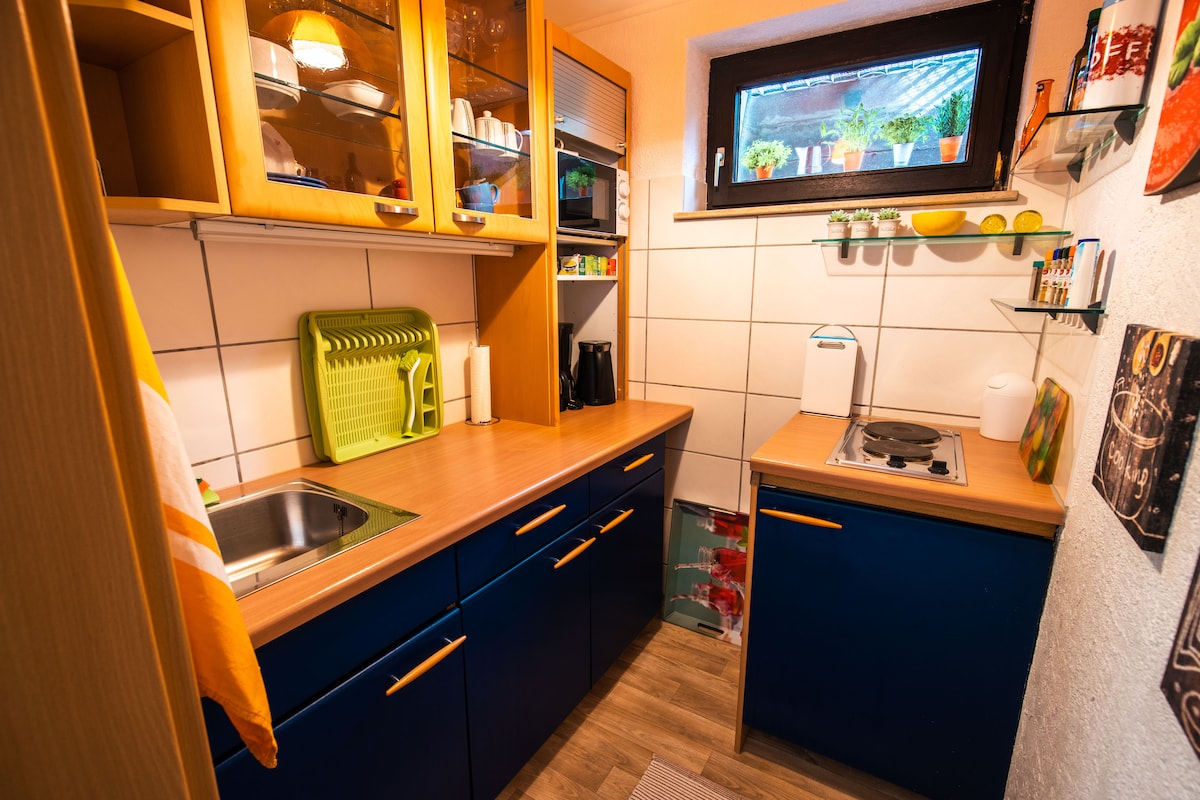 Un pequeño y bonito apartamento en el sótano en el hermoso balneario de Lippspringe. Tiene una cómoda cama doble, una pequeña cocina y un baño recién renovado. El apartamento está situado en una tranquila calle lateral y cerca del bosque de Kurwald, las termas o el recinto ferial Landesgartenschau. La conexión de autobús al centro de la ciudad o a Paderborn está a solo 5 minutos a pie. Como visitante de nuestro sótano, obtendrá hasta un 20 % de descuento en un tratamiento de masaje curativo tibetano, que se ofrece en el mismo edificio.