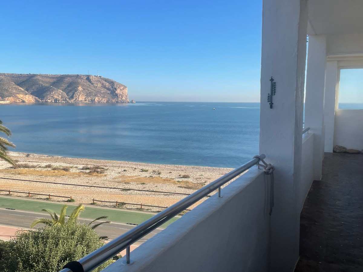 El apartamento tienen vistas de la bahía de Javea y tiene 3 habitaciones y 2 baños, 2 terrazas una de ellas cubierta al lado de la cocina y la otra terraza con un toldo, tumbonas, hamaca, sillas y mesa. El apartamento está a 10 minutos a pie del puerto y 14 minutos del Arenal