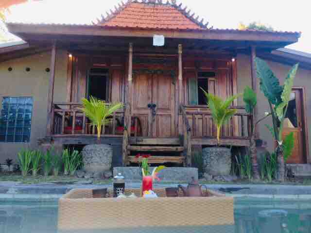 Perfecto para parejas o dos amigos que viajan juntos en busca de alojarse en la naturaleza con vistas a la selva y la terraza arrocera. Quedarte con nosotros significa que tendrás una gran oportunidad para unirte a nuestro estilo de vida de Bali. Puedes unirte a nosotros en nuestra granja y unirte a nuestra ceremonia del pueblo local. La casa en sí se construye con madera reciclada antigua con una característica vintage única. También se completa con piscina infinita privada y cocina . Desayuno incluido. Se puede proporcionar otra comida a costo adicional.
