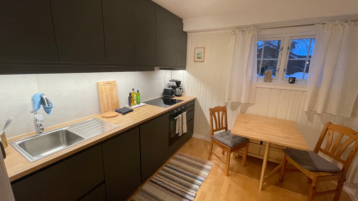 Bienvenido a una bonita casita con exuberante huerto de manzanas y patio, a solo 15 minutos en autobús del centro de Oslo. La casa está completamente recién renovada y decorada de forma moderna con loft y una altura de techo completa de 4 metros. Aquí puedes relajarte en un entorno agradable tanto en interiores como en exteriores, y tener una "sensación de cabaña" cerca de Oslo. Hay cables de calefacción por suelo radiante, una chimenea grande y acogedora que calienta y ducha de lluvia en el baño. En el exterior hay un chapado y un patio de más de 20 m2 con barbacoa, chimenea, huerto e iluminación al aire libre.
