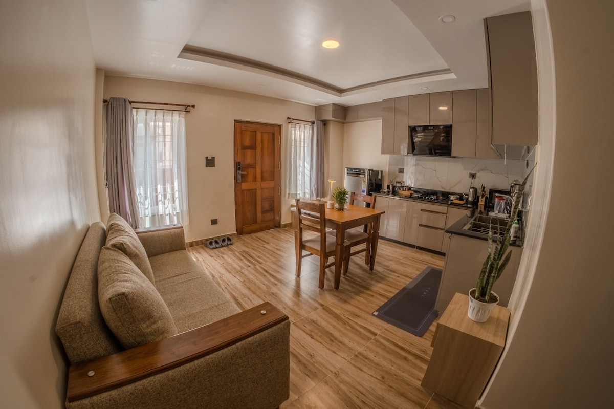 Te damos la bienvenida a tu refugio perfecto de 1BHK en el corazón de Katmandú, Lazimpat. Este apartamento está diseñado para la máxima comodidad y estilo, con capacidad para hasta 2 huéspedes. Entra en una sala de estar luminosa y espaciosa llena de luz natural, con un dormitorio acogedor y una cocina totalmente equipada. La suite cuenta con comodidades modernas y acceso a servicios excepcionales como un gimnasio y un amplio estacionamiento. Ubicado en el centro, disfrutarás de un fácil acceso a tiendas, restaurantes e instalaciones recreativas locales.