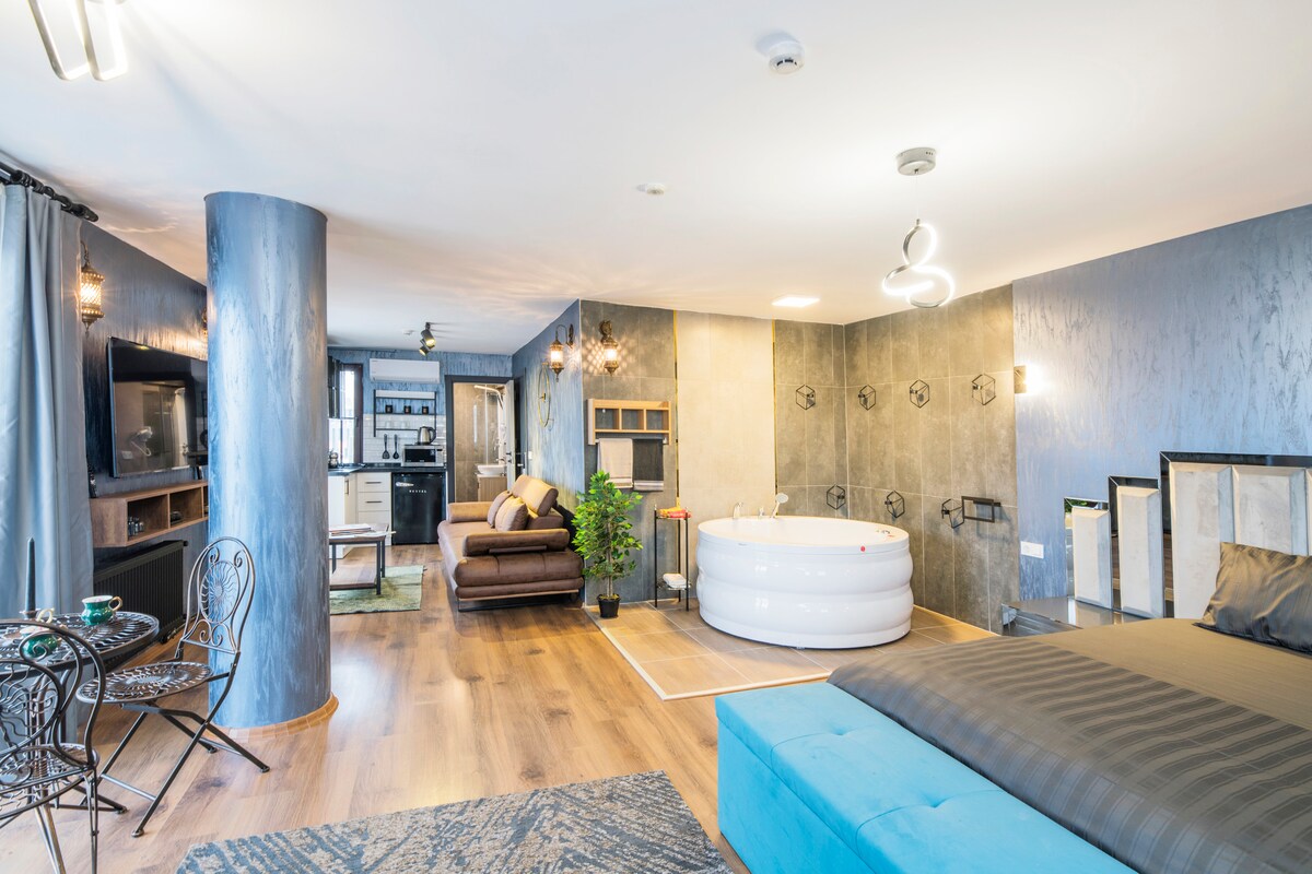 A solo 5 minutos a pie de Gálataport, a 10 minutos a pie de la Torre Gálata, - Terraza privada y zona de barbacoa para el apartamento. - Departamento de estudio con techos altos. - Está ubicado en el cuarto piso del edificio, no hay ascensor. - No apto para personas mayores. Totalmente equipado (aire acondicionado, conexión inalámbrica a Internet, lavavajillas, cafetera automática, secador de pelo + plancha, aspiradora, utensilios de cocina y mucho más) - El estacionamiento de pago está a 30 metros de distancia.