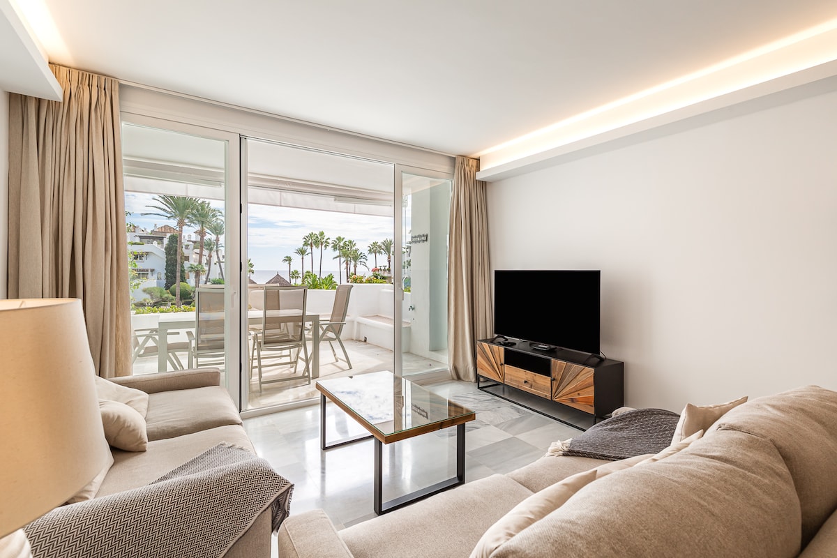 Presentamos este espectacular apartamento primera planta en el exclusivo complejo Alcazaba Beach, uno de los destinos más solicitados de la Costa del Sol. Ubicado en la playa, este hogar es el refugio perfecto para disfrutar de unas vacaciones cómodas y rodeado de la naturaleza. . La joya de esta propiedad es su terraza con vistas al mar , piscinas y las zonas ajardinadas , un auténtico oasis donde podrás relajarte al sol, disfrutar de cenas al aire libre