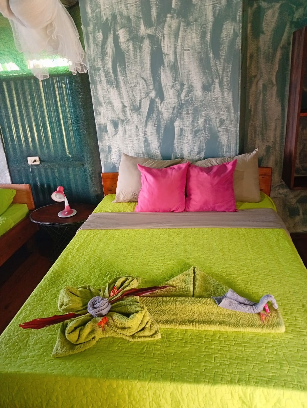 Sumérgete en la exuberante selva tropical en nuestra cabaña, ubicada a solo 1 km del corazón de la bahía de Drake. Descubre maravillas naturales, incluido un río refrescante perfecto para nadar y hacer senderismo hasta impresionantes cascadas. Podemos organizar una variedad de excursiones para explorar la zona. Nuestra cabaña ofrece un baño privado. Hay una cocina compartida y un comedor disponibles para uso de los huéspedes. Jorge, junto con sus amigables mascotas, reside encima de la cocina y está disponible para ayudarte con cualquier necesidad que tengas.