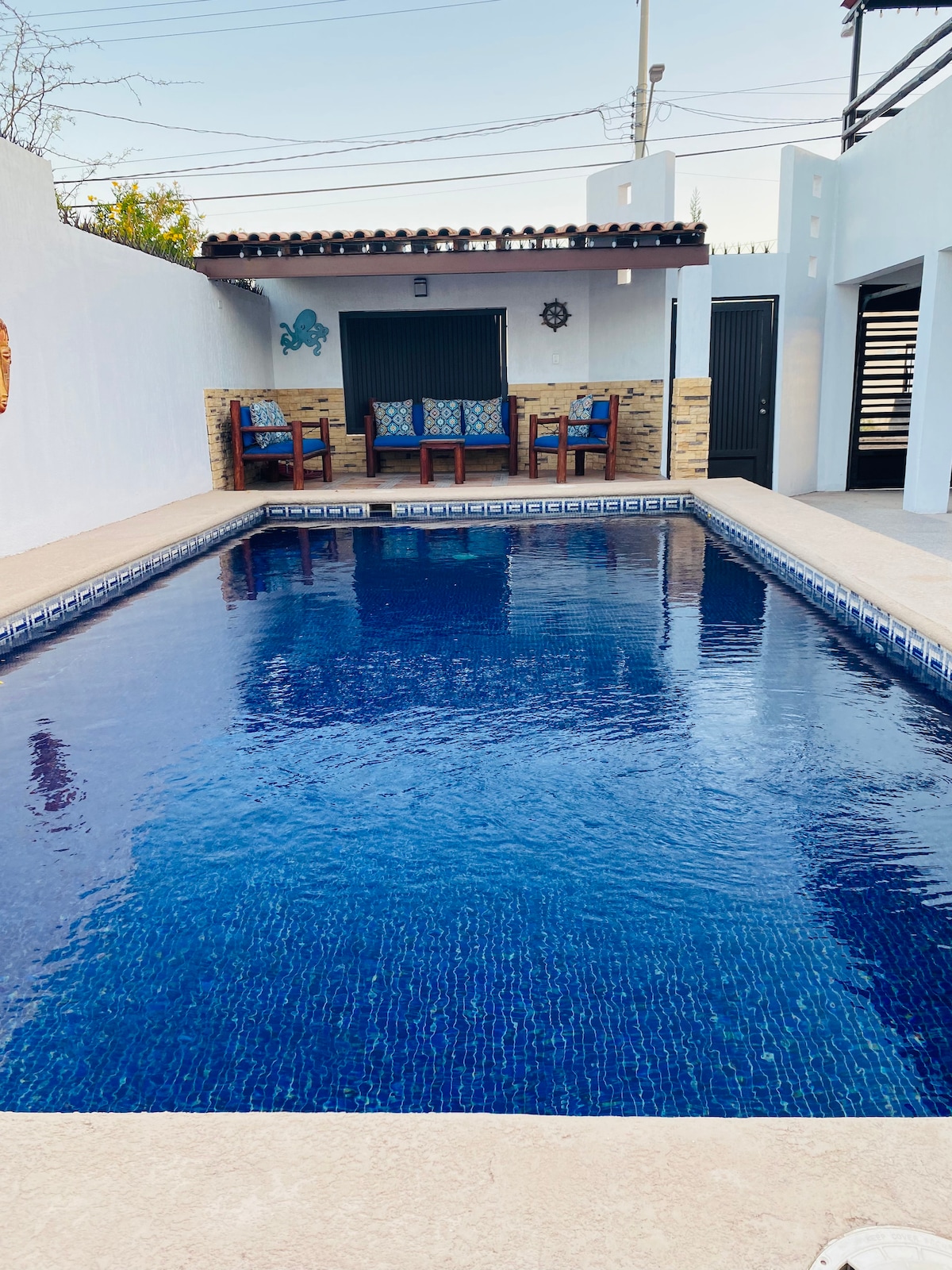 Hermosa casa de 4 recámaras con una majestuosa vista y acceso al mar. Cuenta con cocina equipada, comedor, sala, TVs e internet satelital Starlink. El amplia área social tiene asador, alberca, sillas reclinables y dos comedores para que disfruten de los increíbles atardeceres y momentos irrepetibles con amigos y familia.