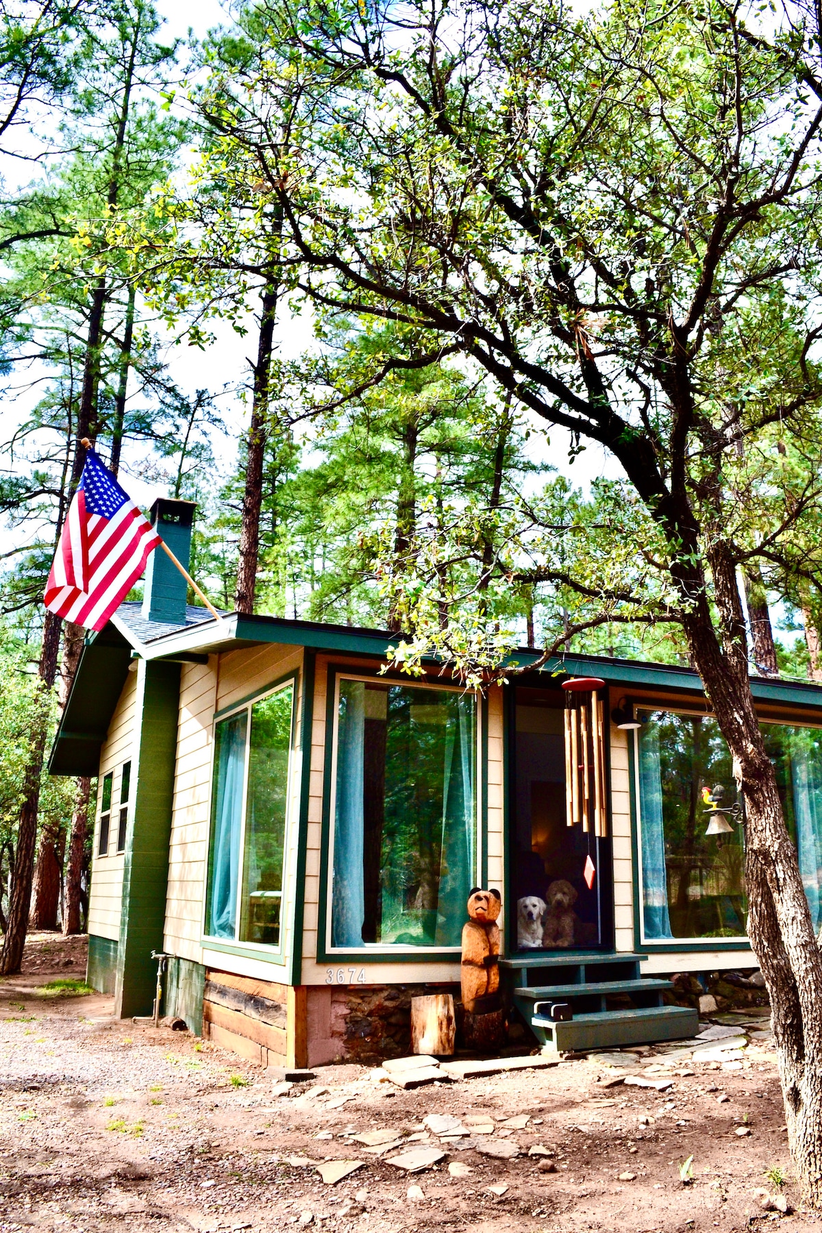 Las hermosas vistas a la montaña crean un telón de fondo increíble para la luz siempre cambiante. ¡Las tormentas de monzón y los arcoíris son comunes! Las noches despejadas permiten ver planetas y un sinfín de estrellas. Verás detalles de la Vía Láctea como rara vez se ven en nuestro mundo actual. Deambula por el camino arbolado, disfrutando de las profundas campanas esparcidas entre los pinos. Acurrúcate en el sofá de la terraza con vistas panorámicas.