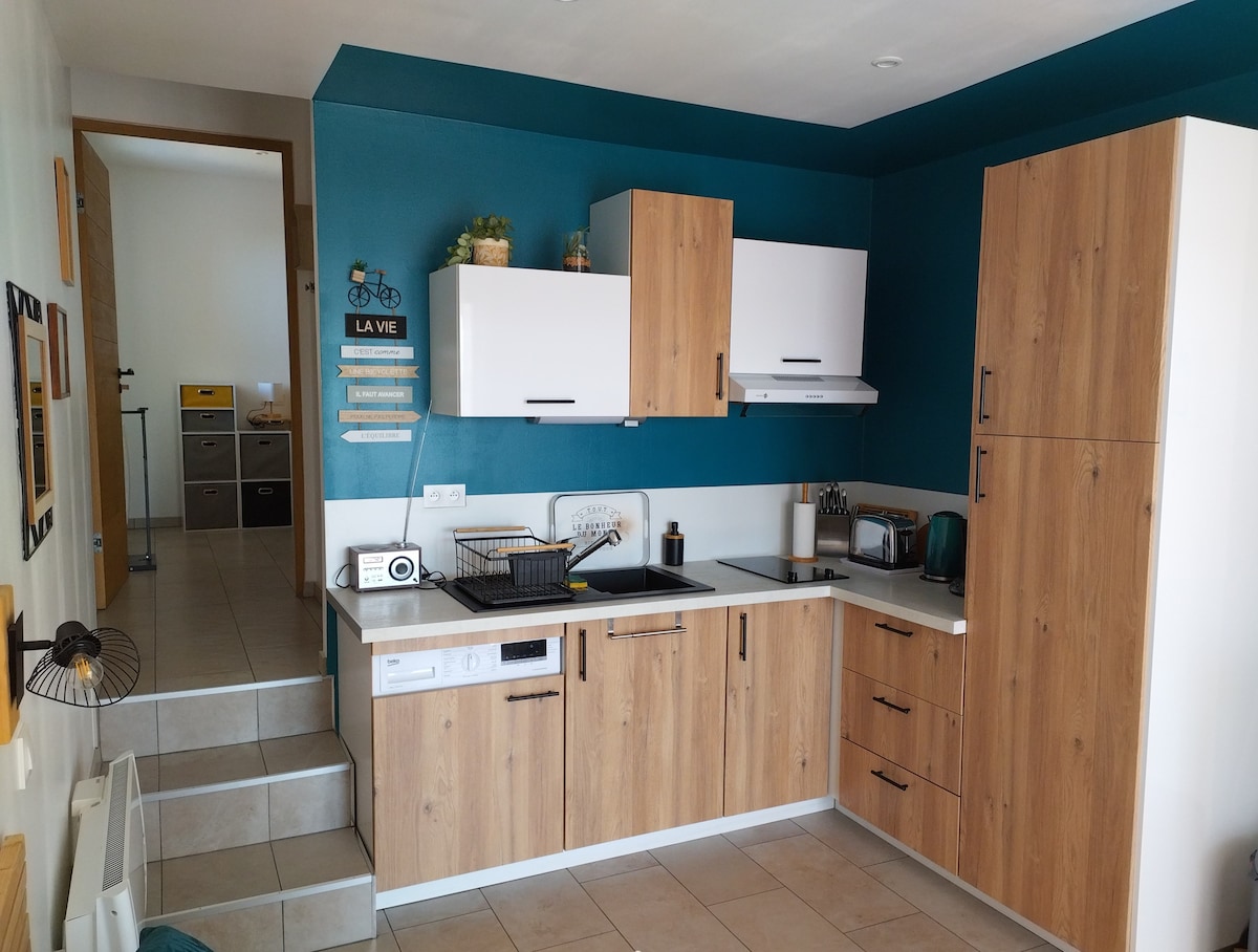 En una residencia de lujo reciente, muy bonito apartamento para 4 personas totalmente equipado (wifi),con su zona de cocina, su salón comedor (sofá cama de 160) un dormitorio con cama de 160 y un baño, su terraza con muebles de jardín y tumbona con vistas a la montaña y los pueblos,garaje privado. Residencia tranquila, situada a 200 metros de todos los comercios y de la playa de arena fina Disfrute del excepcional mercado de pescado todos los días.
