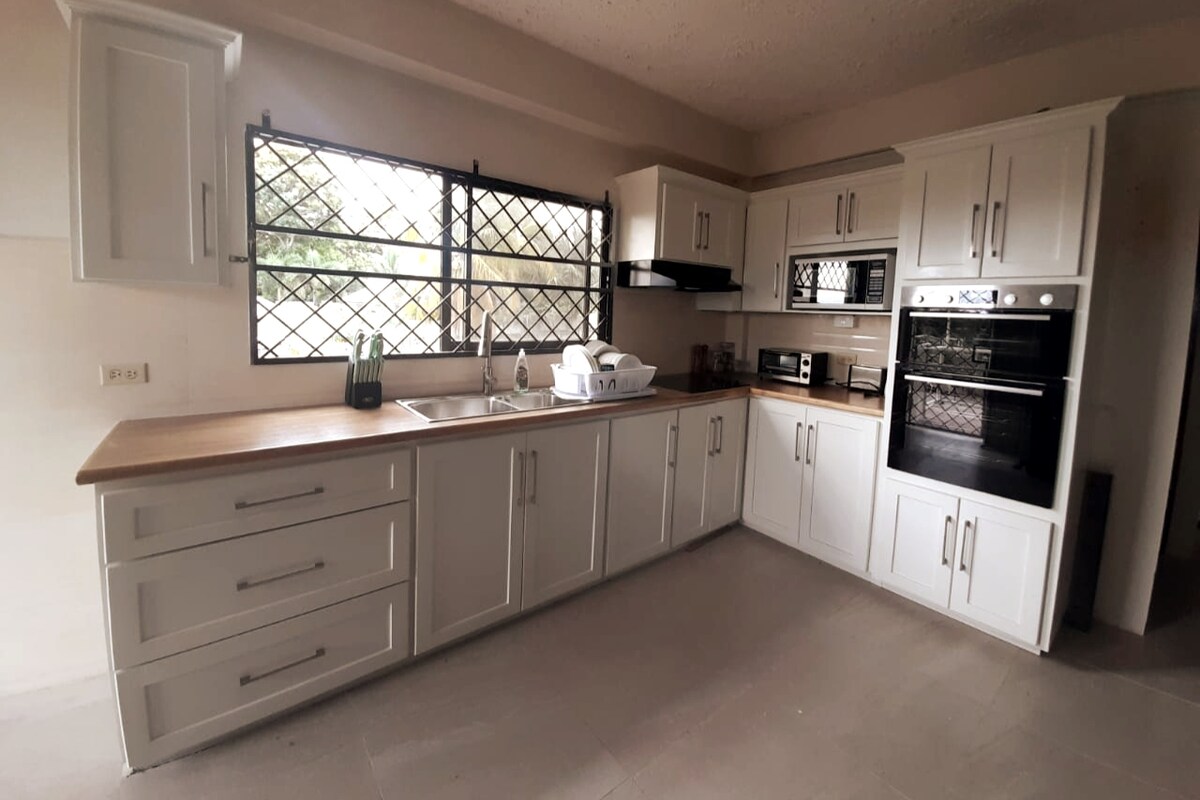 Mango Vert House es un hermoso y espacioso hogar lejos de casa donde puedes traer a toda la familia para relajarte. Podemos ofrecerle: Casa grande y espaciosa ubicada en el corazón de Arima Atiende cómodamente a grupos grandes (hasta 14 personas). Cuatro dormitorios dobles con una en suite 2 camas dobles, 1 cama tamaño queen, 1 litera y 1 cama individual. Cerca de los servicios locales Wifi gratuito sala de estar con sofá cama Área segura con CCTV externo. Acceso con timbre de video y protección contra robos Cuna de viaje para bebés y seguridad para bebés Juguetes para niños