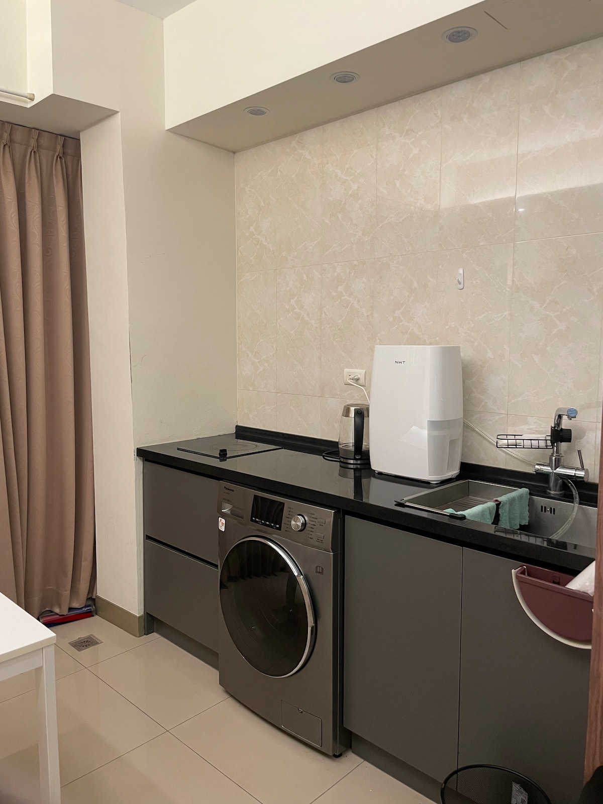 Un bonito apartamento estudio de gran altura con llegada autónoma en Tamsui, Taipéi. Adecuado para viajeros de larga estancia. Wifi gratuito. Todo tu espacio personal. Puedes cocinar y lavar la ropa en el apartamento. Además, hay un gimnasio y una piscina al aire libre (horario de verano limitado: jun.-sep.).