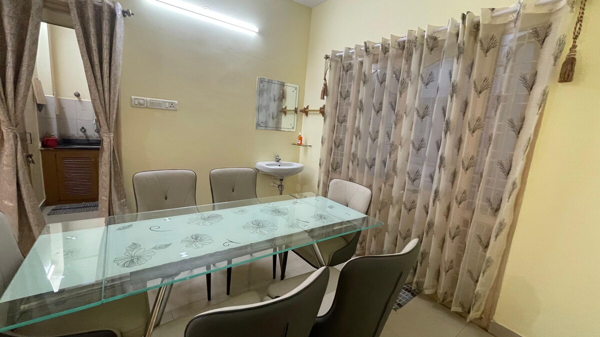 Have fun with the whole family at this stylish place. In a 4 Bed room apartment, tastefully furnished, 24 hours power backup, Hot water all the time, Blue ray disc player, complete kitchen for use, 2 Balcony, 3 Bathrooms with shower and Bath tub, 2 LED Tv with tata play, parking for your car at Basement. It’s Ready for you with clean linen and beds.