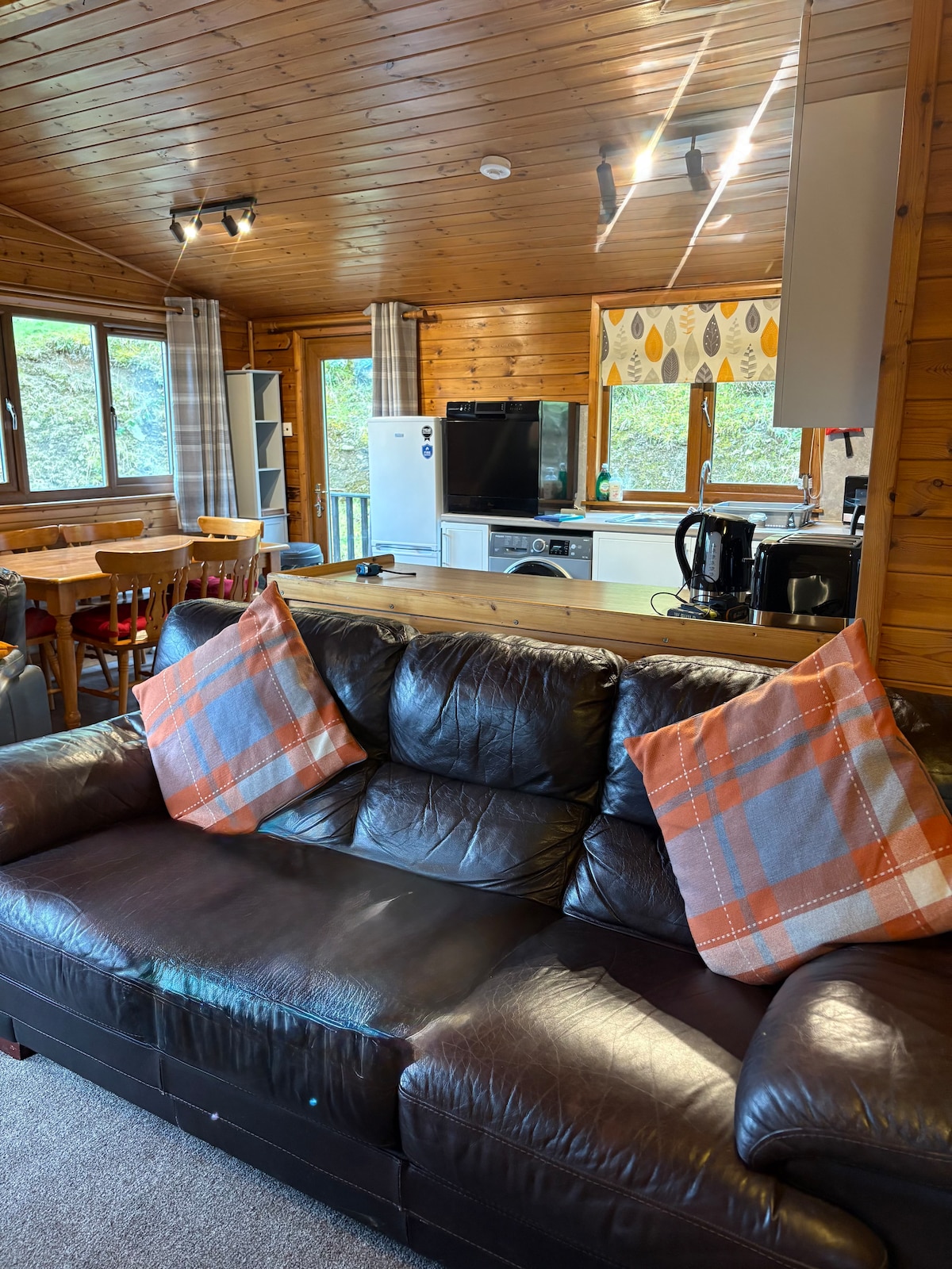 A newly redecorated self catered pet friendly cosy log cabin nestled in the private grounds of Ardoch Lodge a 9 acre Victorian Hunting Lodge. This stunning log cabin is set in a wooded area covered with bluebells in the spring some distance from the house, with private car parking, and outside dining area. The cabin is furnished and equipped to the highest standards making it cosy and comfortable at any time of the year. We also offer EV charging on site.