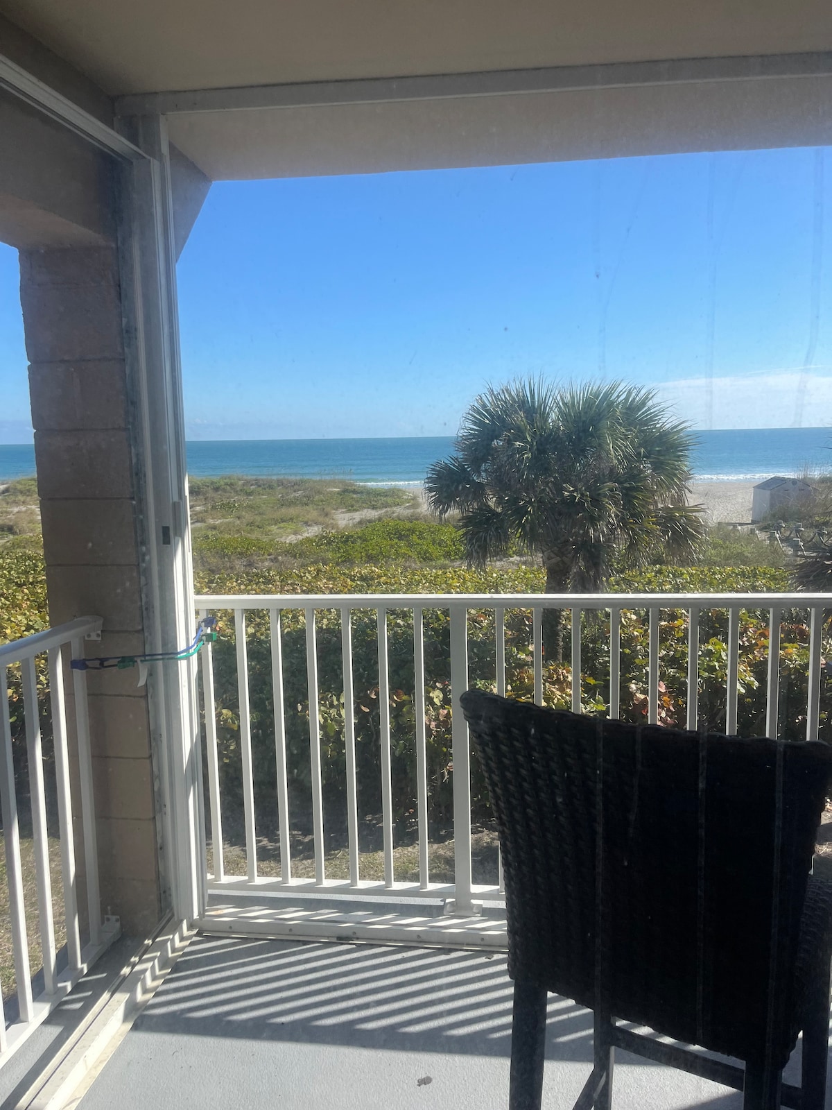 Alójate en la playa en este apartamento en la planta baja frente al mar. * Acceso privado a la playa desde el patio trasero. * Cómoda ubicación en el centro de Cocoa Beach. * Patio frente a la playa con asientos. * Dormitorio con cama tamaño king. * Cocina Completa * 2 televisores inteligentes con cable. * Wifi gratuito. * Plaza de aparcamiento asignada gratuita. * Baño completo * Lavadora y secadora en el alojamiento * Sofá plegable tamaño queen * Equipo de playa y toallas * Artículos de aseo, café y té de cortesía * Ropa de cama y toallas de baño adicionales * Se permite 1 mascota. Se aplica una tarifa por mascota.