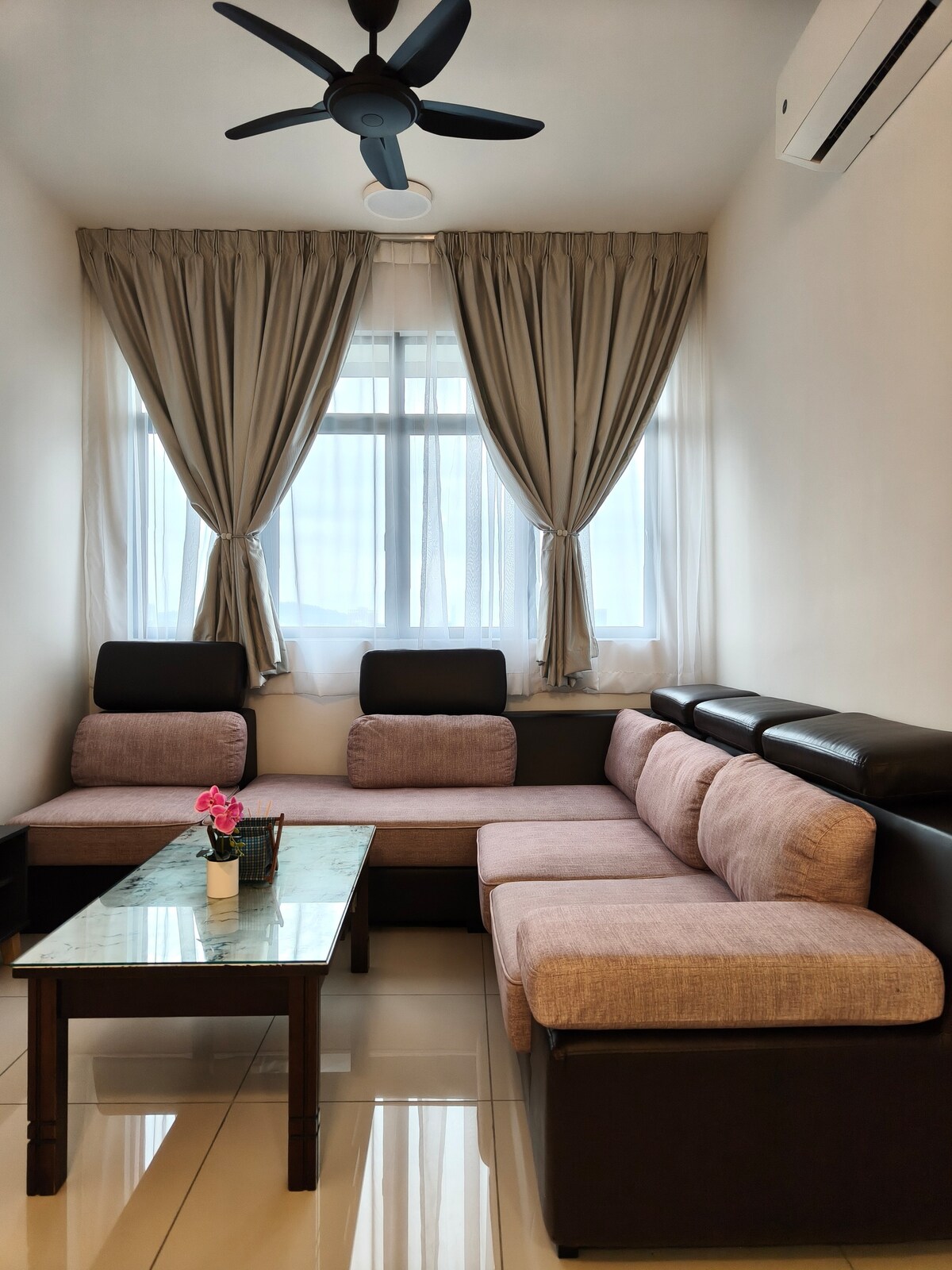 ¡Bienvenido a nuestra tranquila casa ubicada en el corazón de Cheras! Tanto si estás de visita por un viaje familiar como por una escapada corta, nuestra casa de familia ofrece comodidad y un toque hogareño. 2 dormitorios | 2 baños Totalmente amueblado con aire acondicionado y cómoda cama. Plaza de aparcamiento privado gratuito justo en la puerta Disfruta de una Smart TV de 55" y wifi, además de una acogedora sala de estar para relajarte Prepara comidas sencillas en nuestra cocina bien equipada A solo minutos de restaurantes, tiendas, centros comerciales, MRT y autopistas.