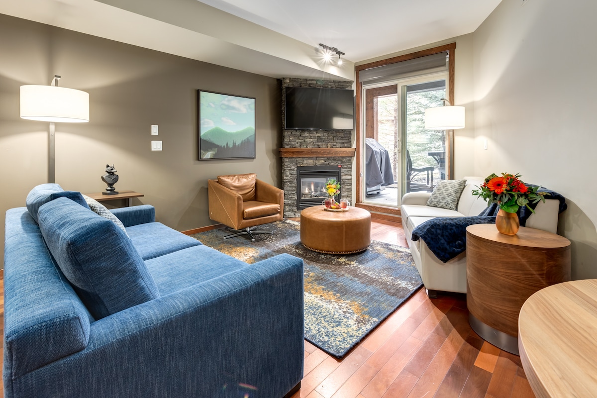 Con vistas a la hermosa montaña Rocosa desde el balcón, el dormitorio y la sala de estar, este nuevo apartamento de un dormitorio recién renovado te ofrece todas las comodidades que esperarías. El dormitorio cuenta con una cómoda cama tamaño king. En la sala de estar hay un sofá cama de alta calidad para acomodar huéspedes adicionales. La chimenea proporciona un ambiente acogedor. Wifi gratuito y TV inteligente con Amazon Prime Video y Shaw TV para tu ocio. ¡Cocina totalmente equipada y bañera profunda con ducha que te hará sentir como en casa!