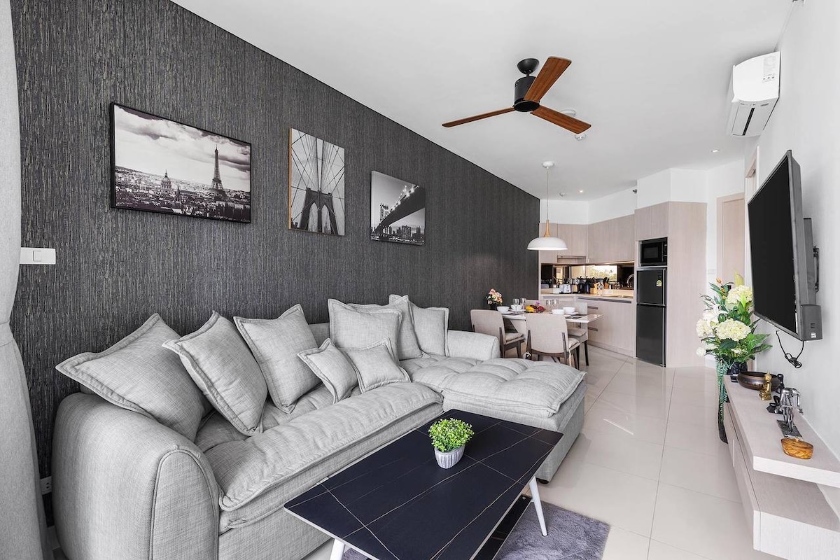 Este condominio con vistas al mar se encuentra entre las playas de Surin y BangTao. La unidad contiene una puerta corrediza de vidrio que ayuda a dividir la sala de estar del dormitorio y ofrece mayor privacidad. Este lujoso edificio está decorado en un estilo hotelero y se adapta a tus necesidades diarias de vacaciones con 3 estilos diferentes de piscinas, incluida una piscina infinita en la azotea, además de instalaciones que ofrecen 360 grados de vistas al mar y a la montaña. Estoy seguro de que tendrás una estadía agradable.