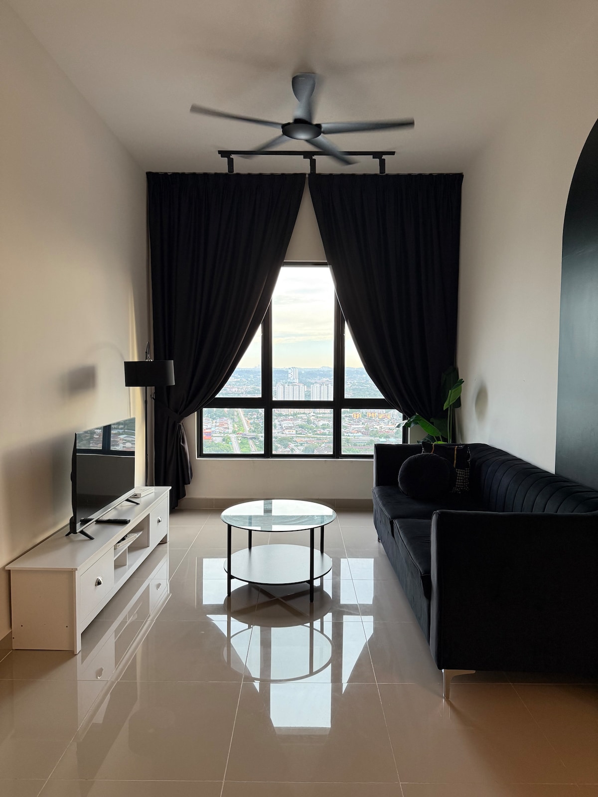 A cosy duplex on the highest floor of the building (Level 21), with a queen bed and a 3-seatersofa. Suitable for both short- and long-term stays. The building is in De Centrum Mall, with shops such as Super7 (supermarket), Tealive, Mr. DIY, SPP Bookstore and 7-Eleven among others, and facilities like launderettes and a clinic (Poliklinik MyMedik). •Check in time: from 3PM •Check out time: 12PM