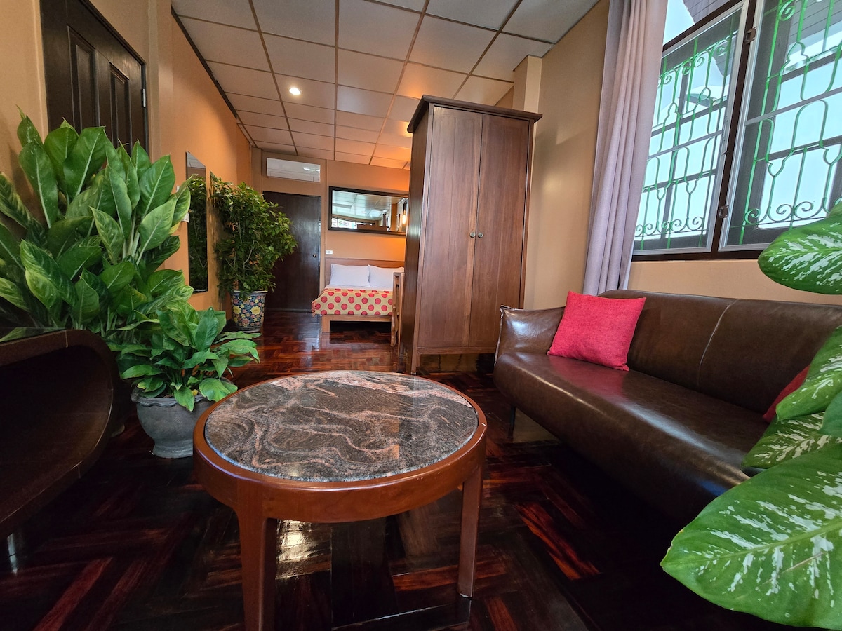¡Escápate a una casa de familia tropical vintage en nuestra villa de los años 60! Tu refugio privado cuenta con un acogedor dormitorio, baño privado y cocina pequeña, enclavado en un exuberante jardín con mangos y árboles de jackfruit. Los pisos de madera de teca restaurados y los detalles retro se combinan con las comodidades modernas. A solo 6 minutos de MRT Lumpini y One Bangkok, perfecto para explorar Bangkok mientras vives la vida lenta y frondosa del viejo dinero Sathorn. 🌿🏡 #OldBangkokVibe