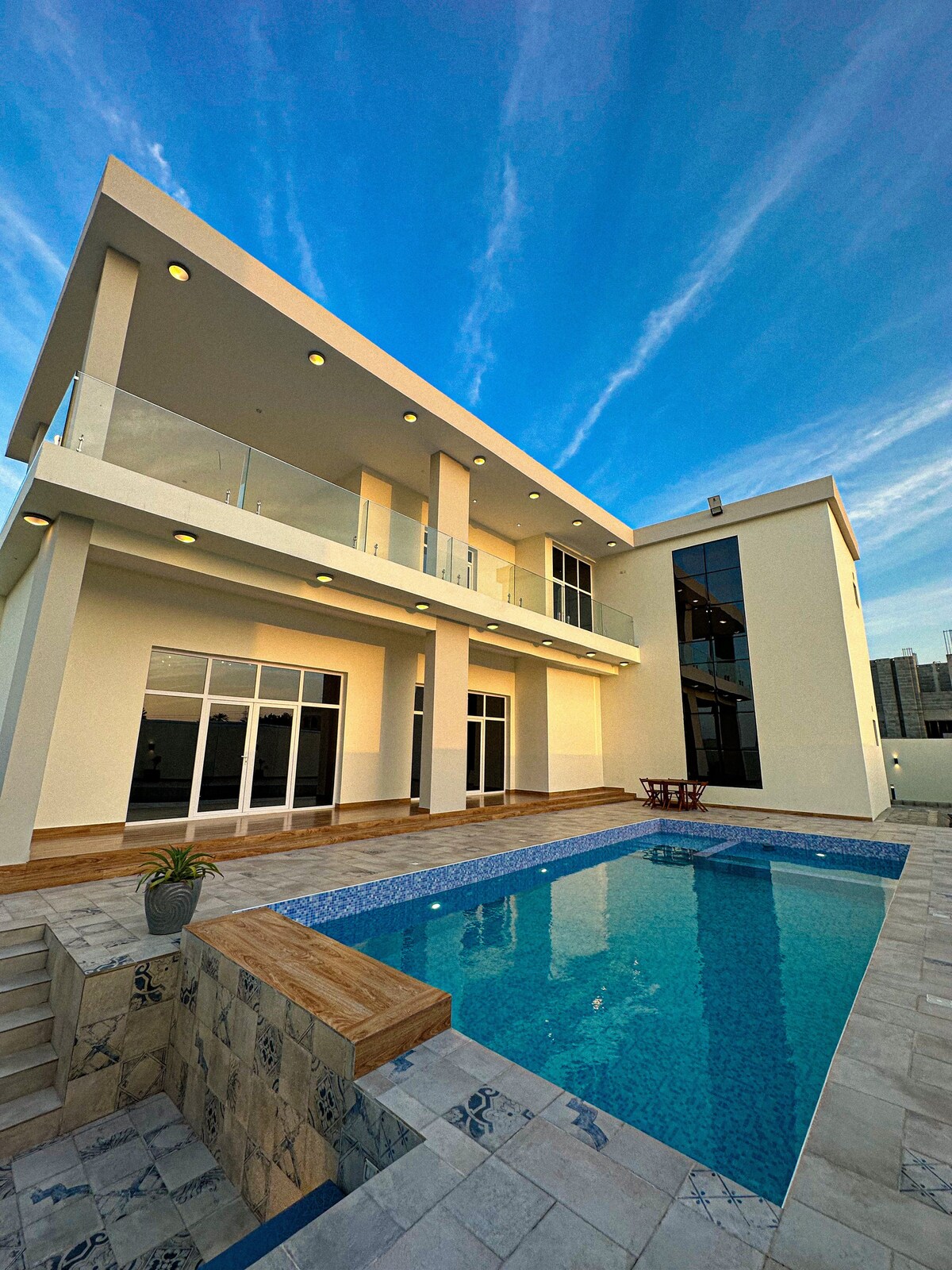 Un resort hotelero dedicado a parejas para vivir un ambiente único diseñado en un estilo único y moderno para adaptarse a tu relajación en diferentes ambientes Cuenta con piscina privada con sala de estar de doble altura y vista a la habitación principal a la piscina y a la sala de estar. La piscina tiene control de temperatura Lugar tranquilo y seguro A 40 km del aeropuerto de Mascate A 35 minutos del aeropuerto