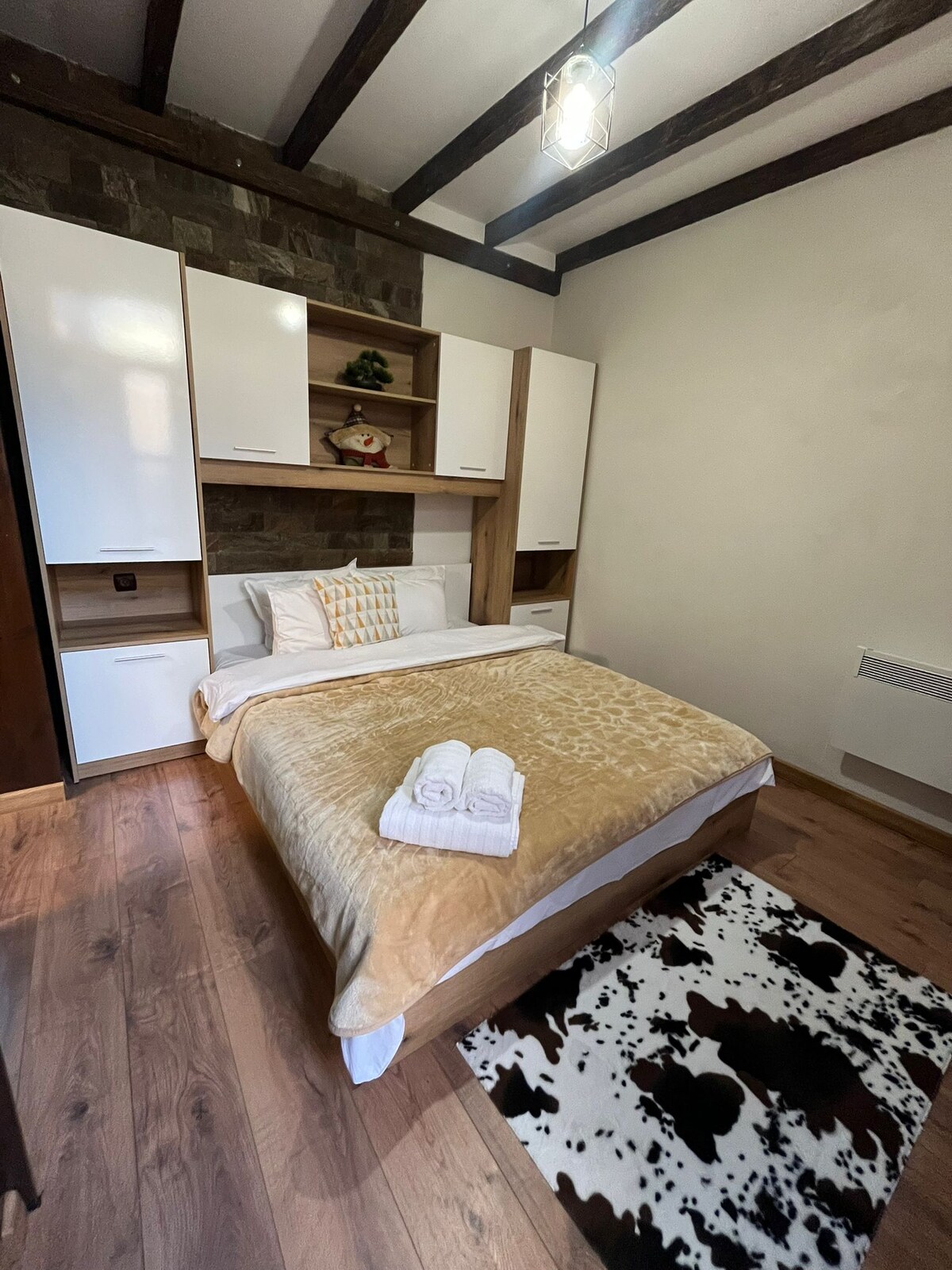 Bienvenido a este moderno y elegante Airbnb con impresionantes vistas panorámicas de las montañas Pirin de Bansko. La ubicación es inmejorable, a solo 30 metros de la carretera de esquí y a pocos minutos a pie del restaurante de Bansko y de la franja de après-ski. Después de un día en las pistas, encontrarás todo lo necesario para relajarte. Una cocina moderna y totalmente equipada, calefacción por suelo radiante, una cómoda sala de estar y una lavadora/secadora. También puedes hacer uso de las instalaciones de gimnasio gratuitas las 24 horas. ¡Estoy deseando recibirte!